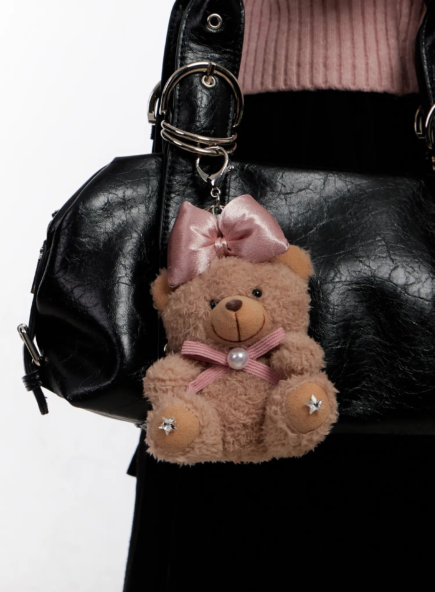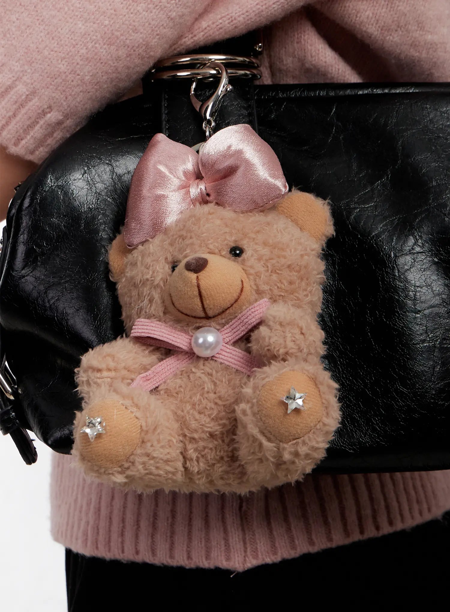 Ribbon Fluffy Teddy Bear Keychain IO527