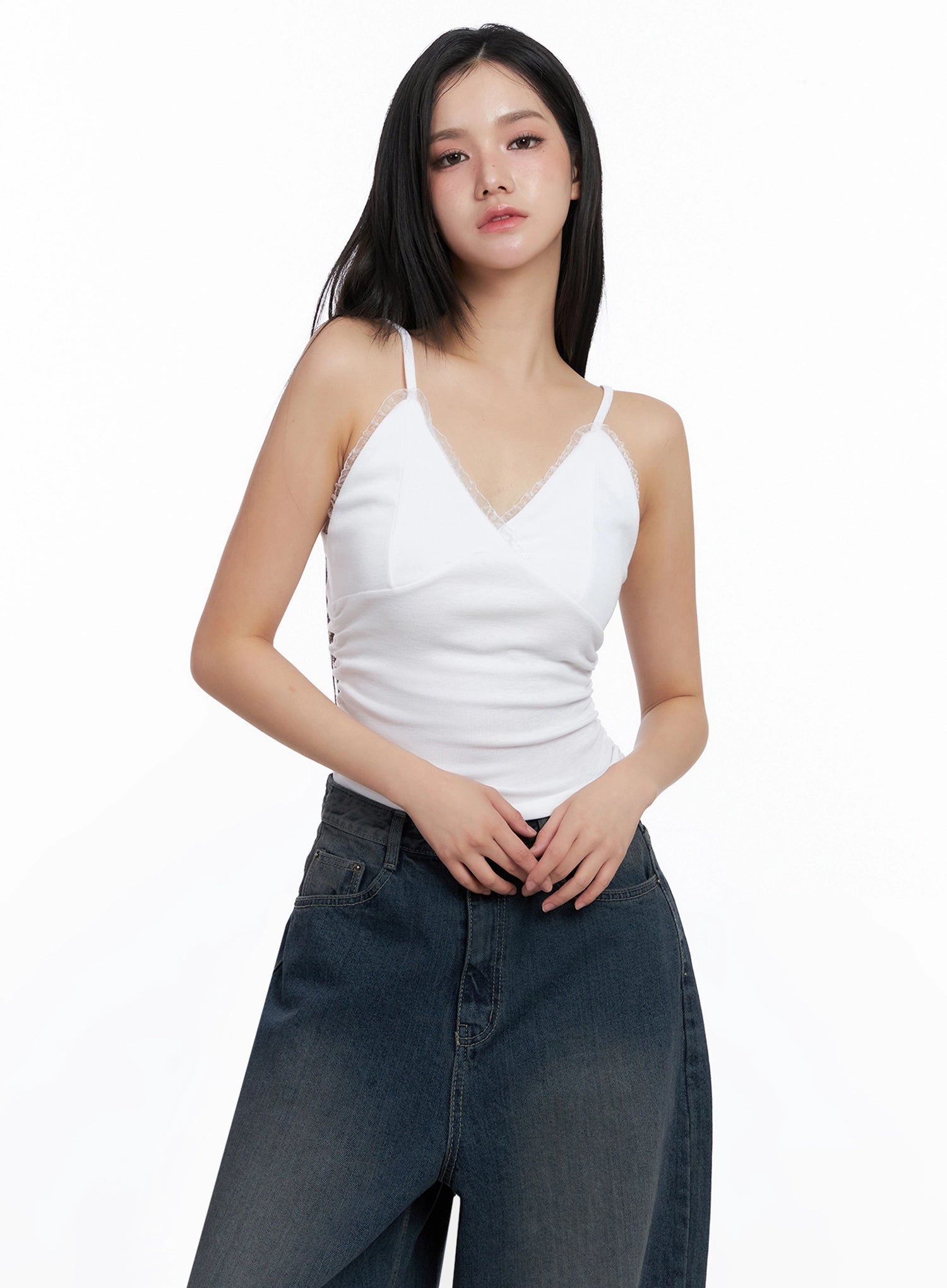 Sleeveless Ruched Lace Cami IS525