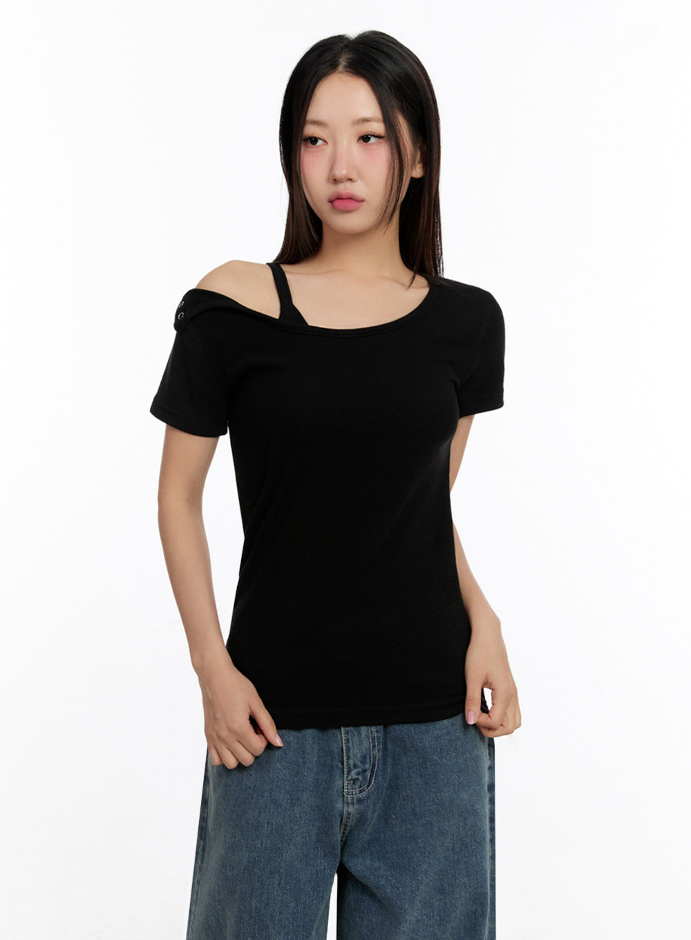 Slim-Fit Buttoned U Neck Top IU509