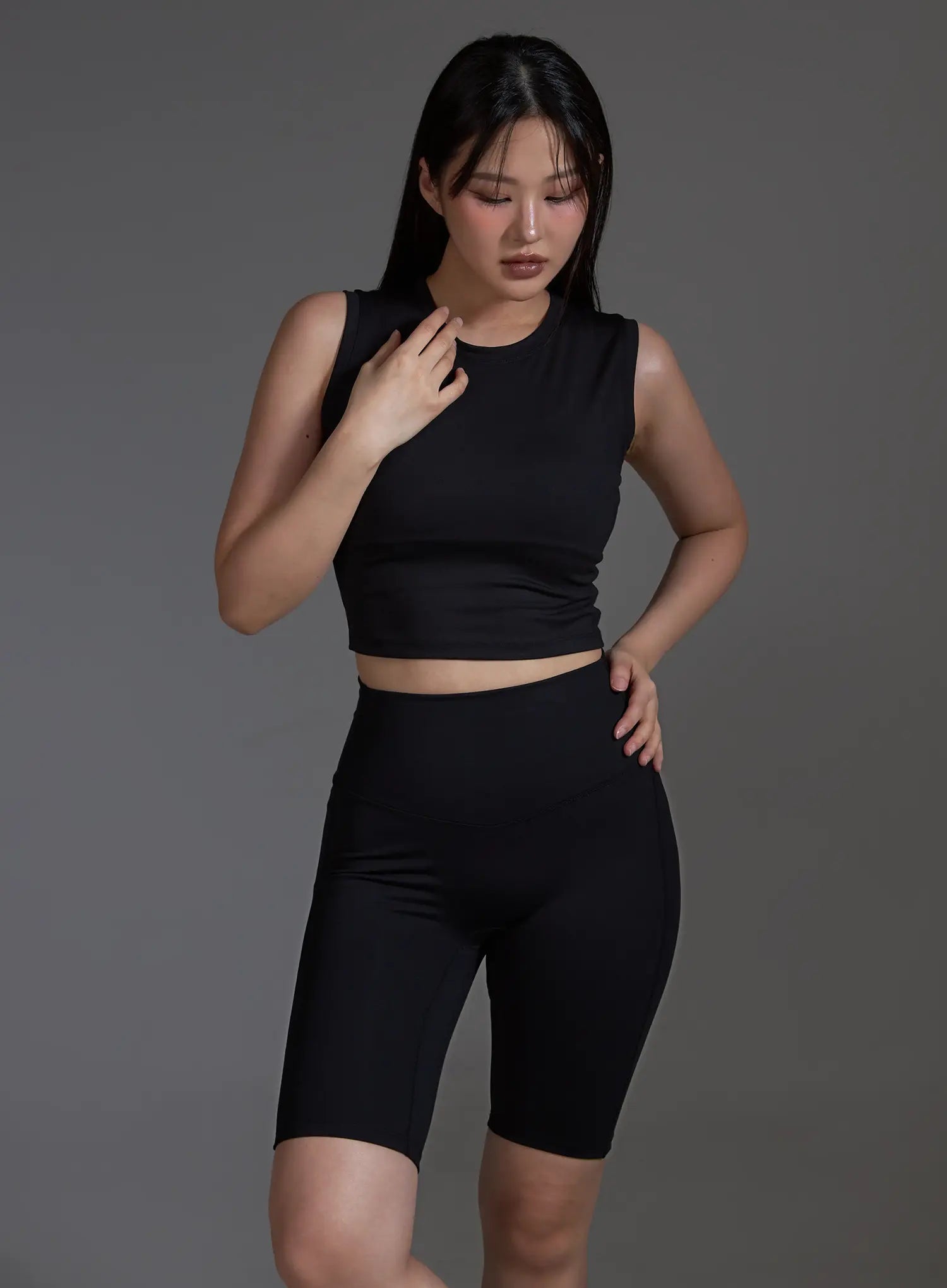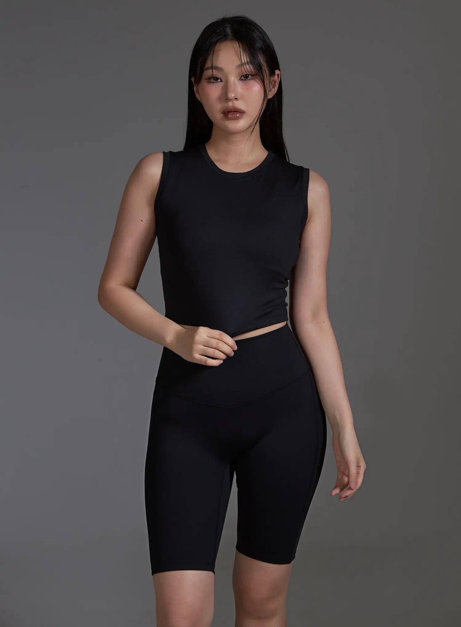 Slim Fit Cropped Sleeveless Top (Black) IO517