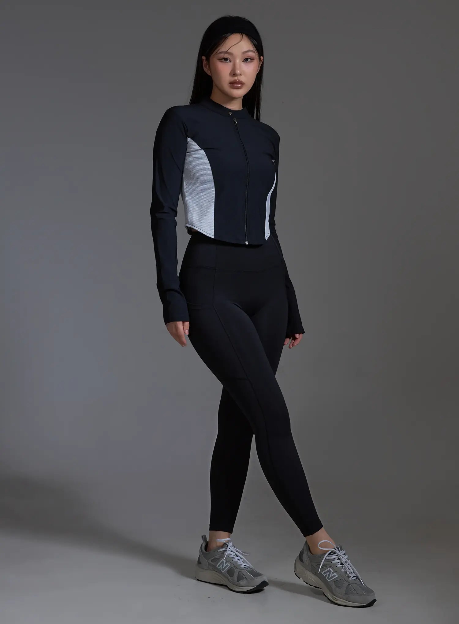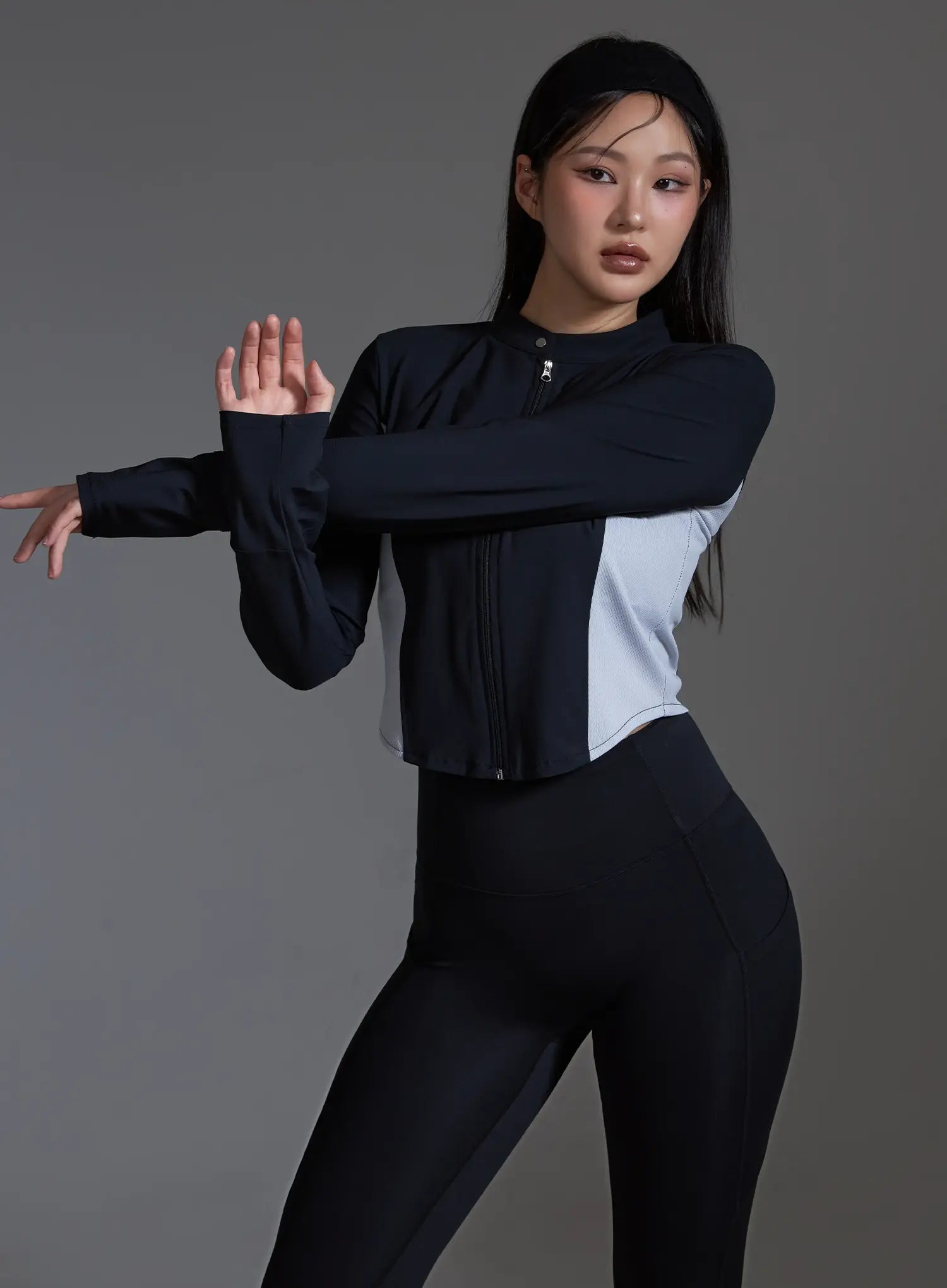 Two-Tone Cropped Zip Jacket (Black) IO517