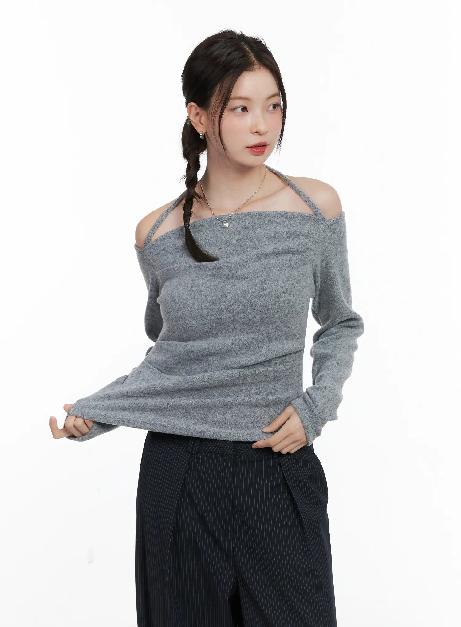 Two-Way Shirred Fleece Off-Shoulder Top CN518