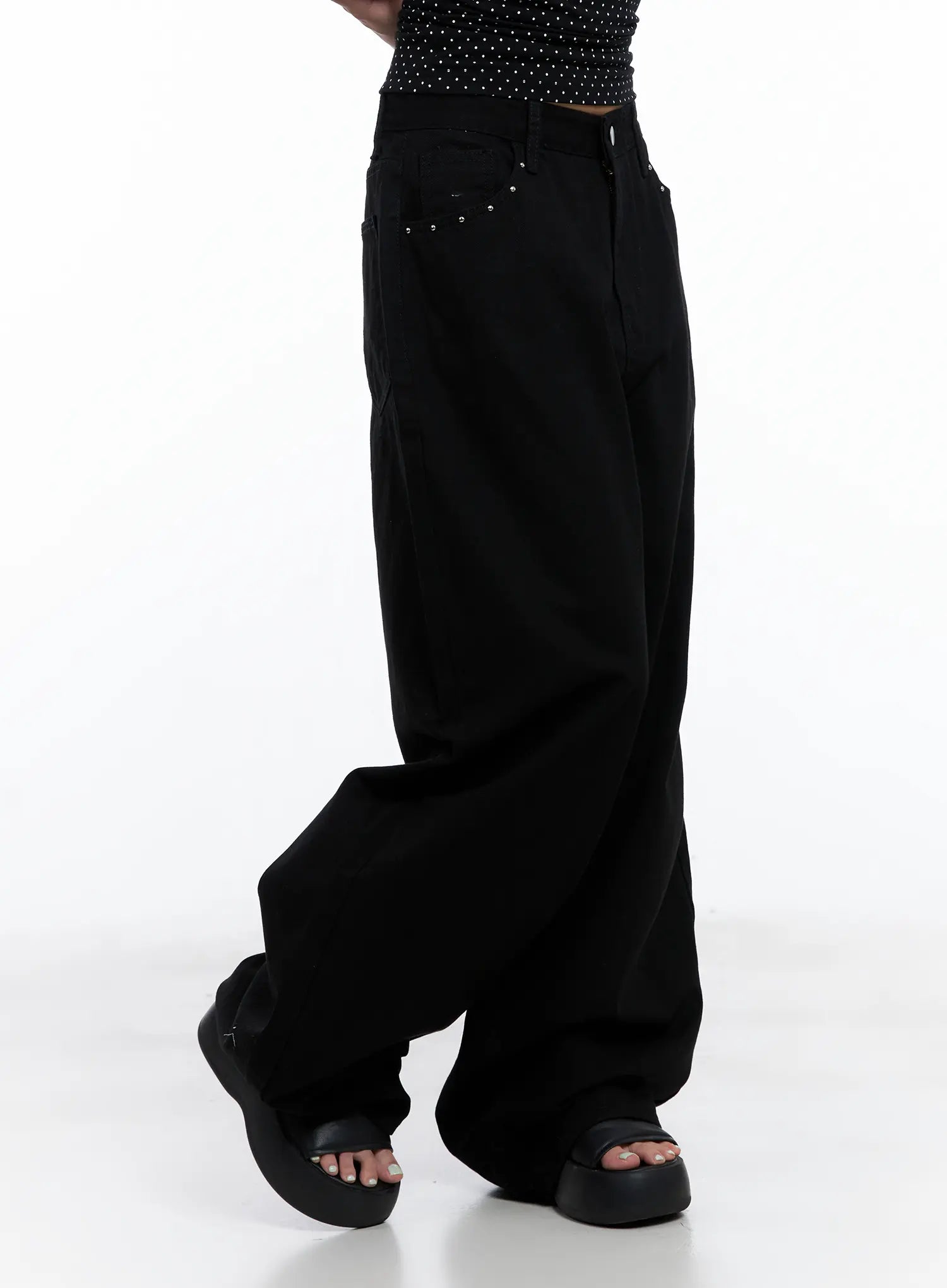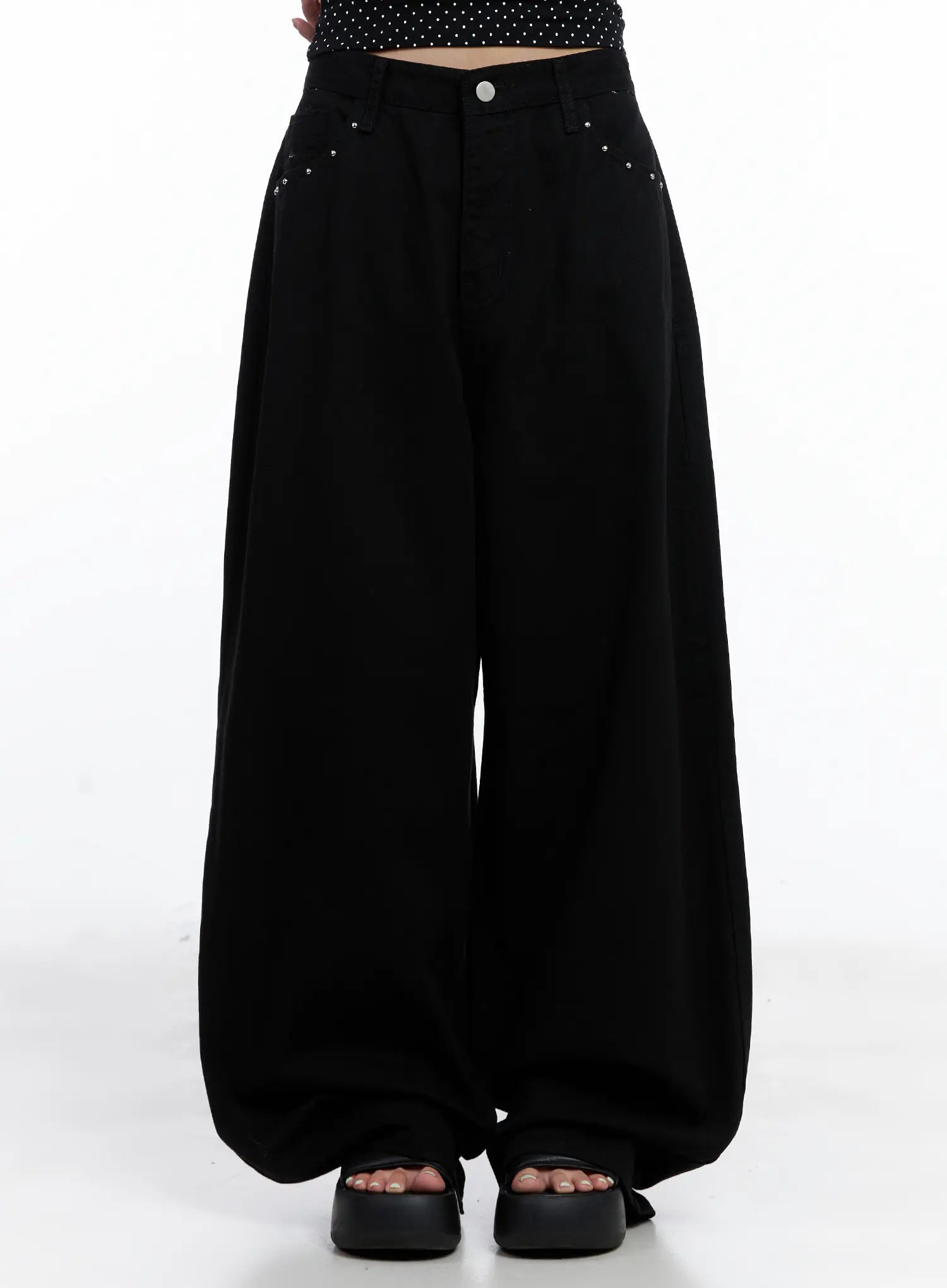Tzuyu Studded Wide-Leg Cotton Pants CL511