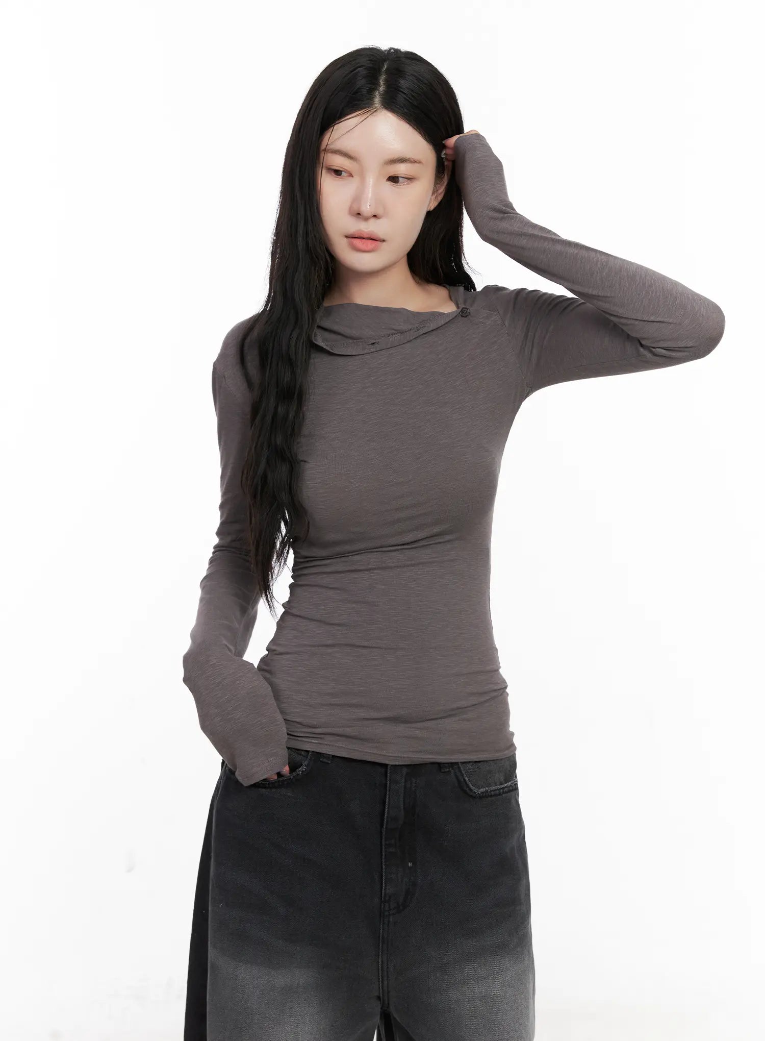 Unsymmetrical Neck Long Sleeve Tee CN513