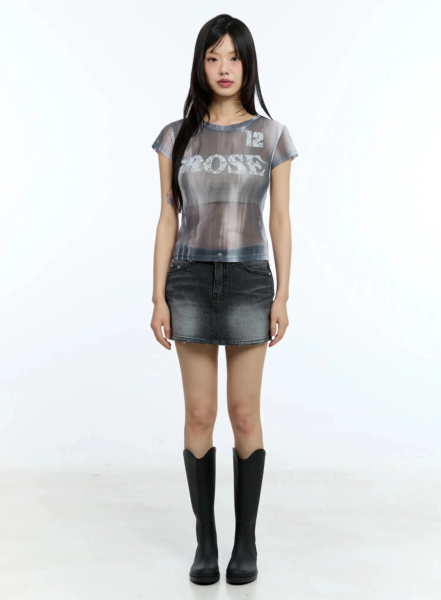 Washed Low-Rise Denim Mini Skirt IU525