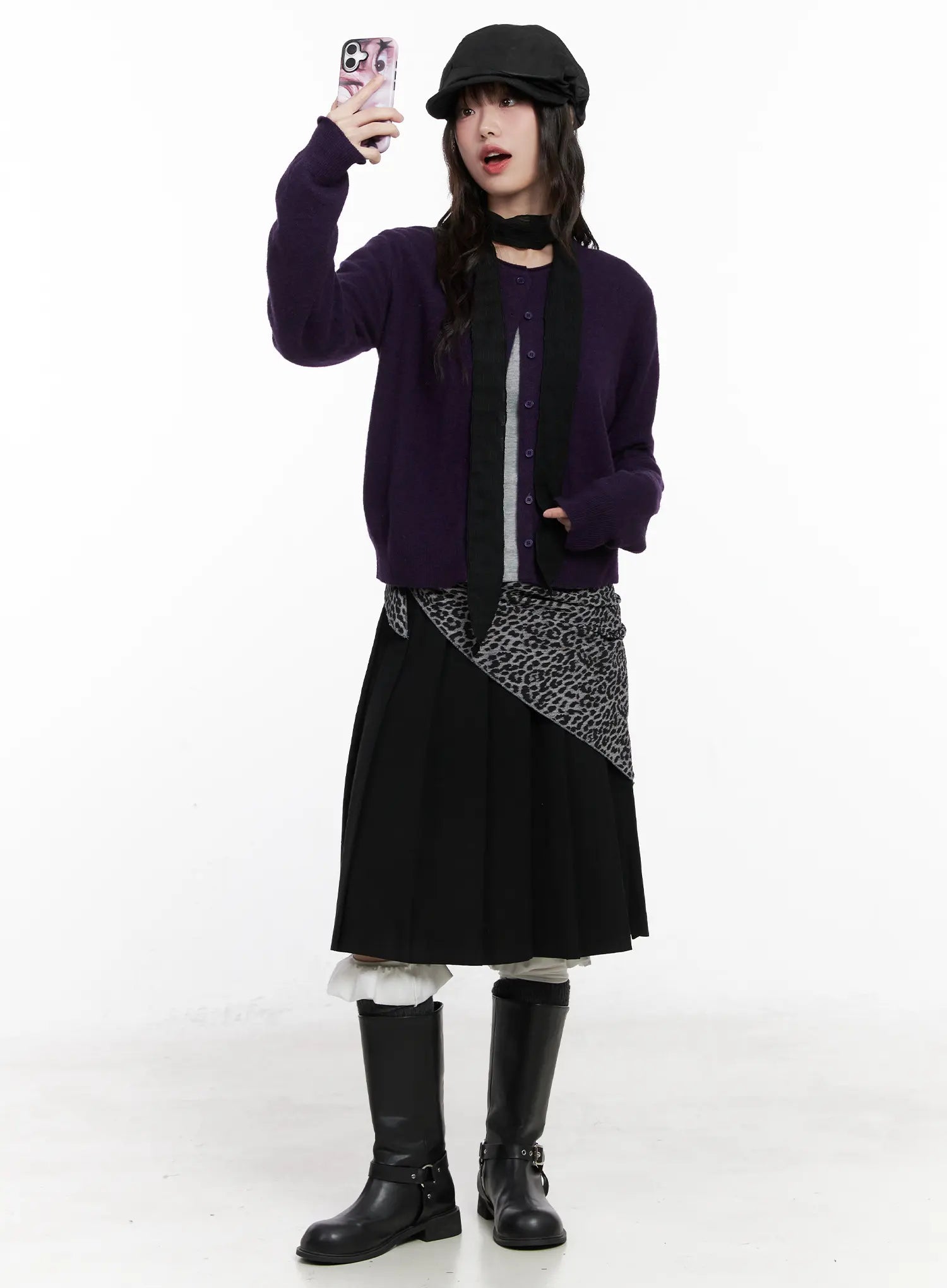 Model is wearing size S/M and the color Dark purple.