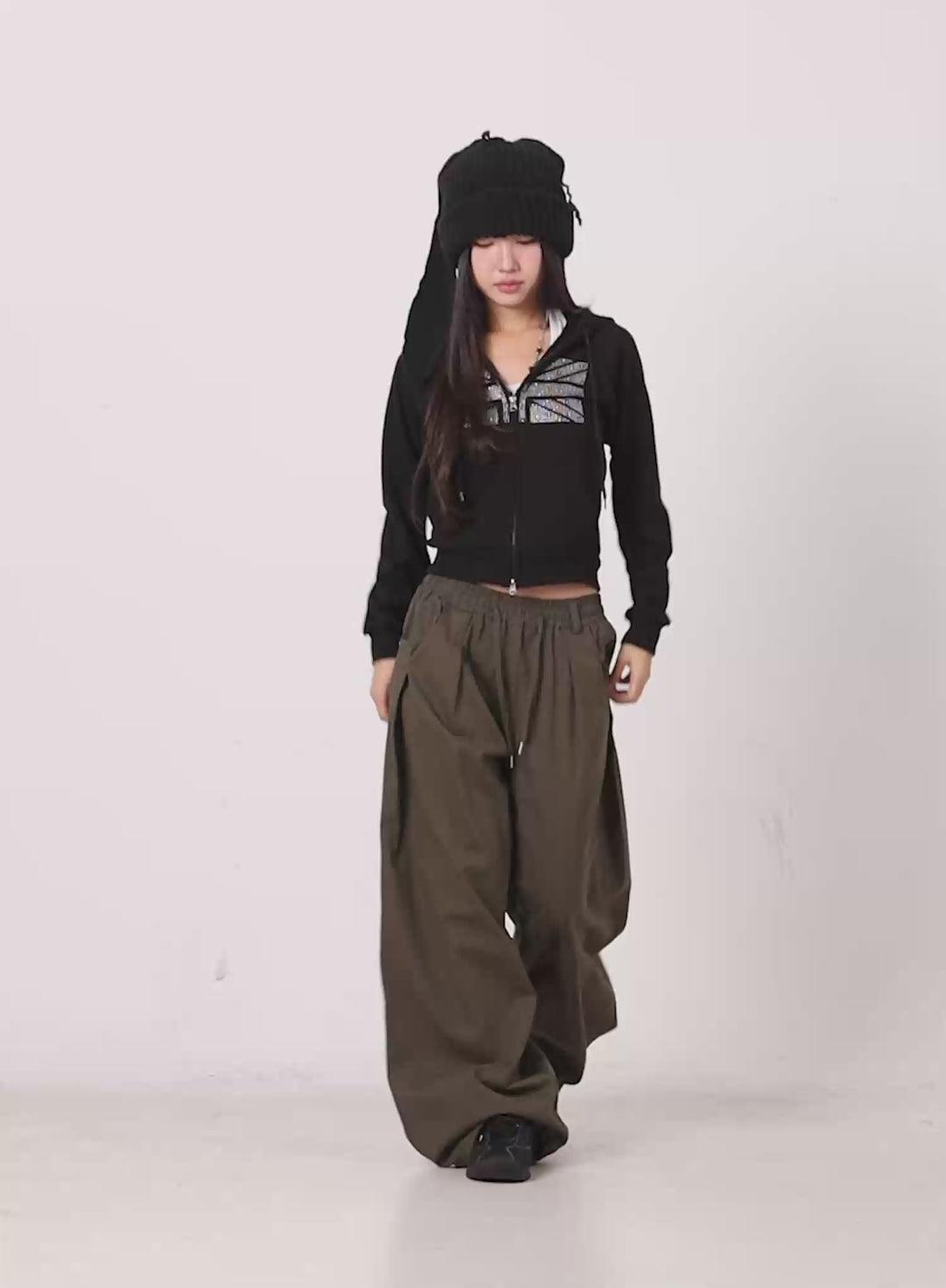balloon-wide-leg-cotton-pants-co515 / Dark brown