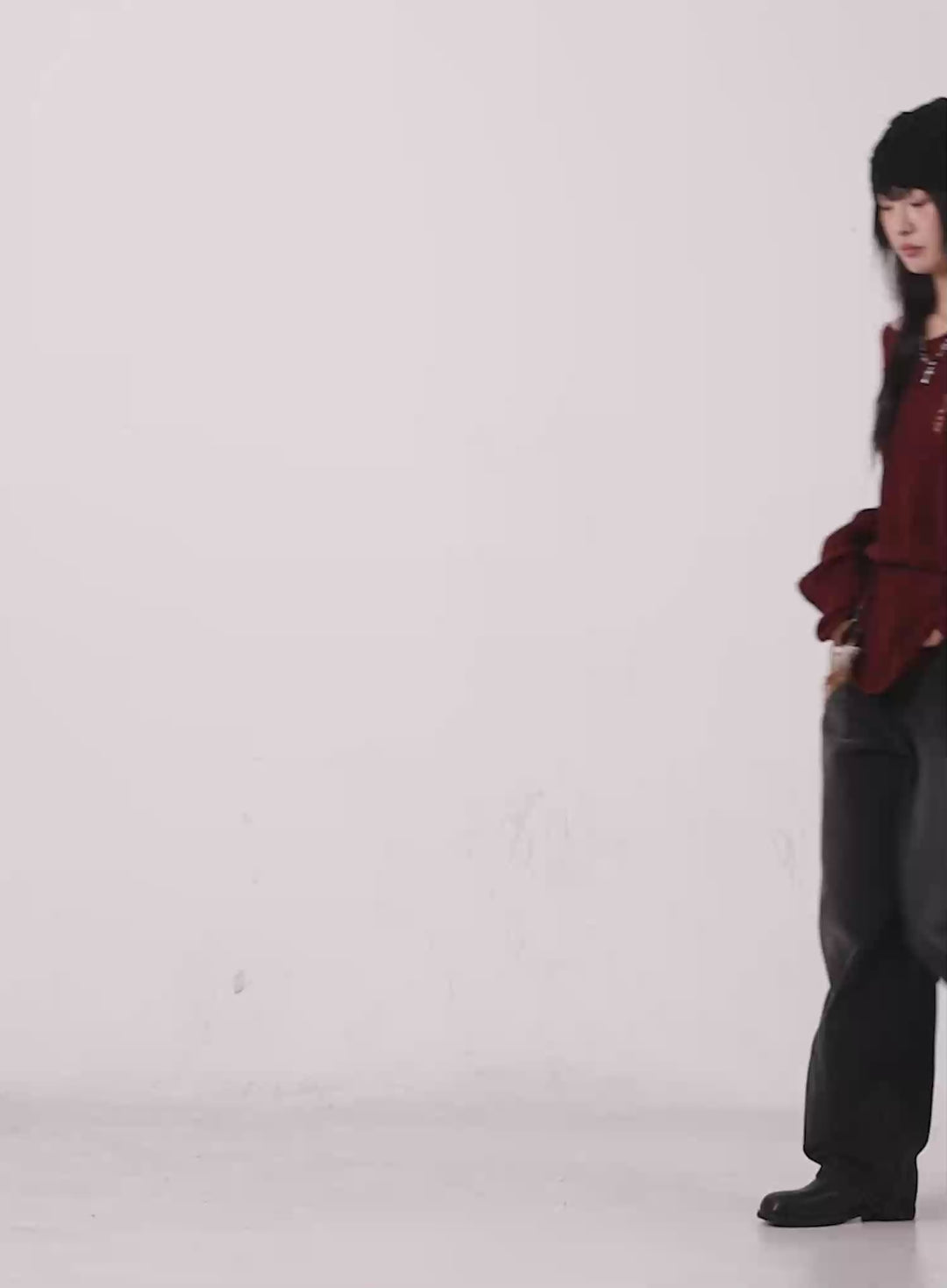 asymmetric-slit-wrap-long-sleeve-top-co507 / Dark brown
