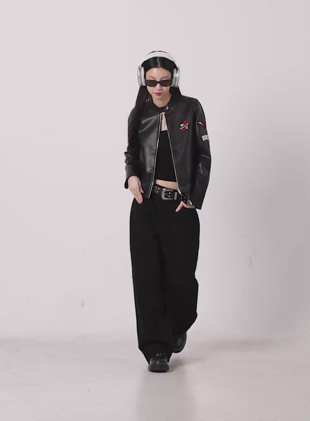 leopard-print-fur-collar-bomber-jacket-in525 / Black