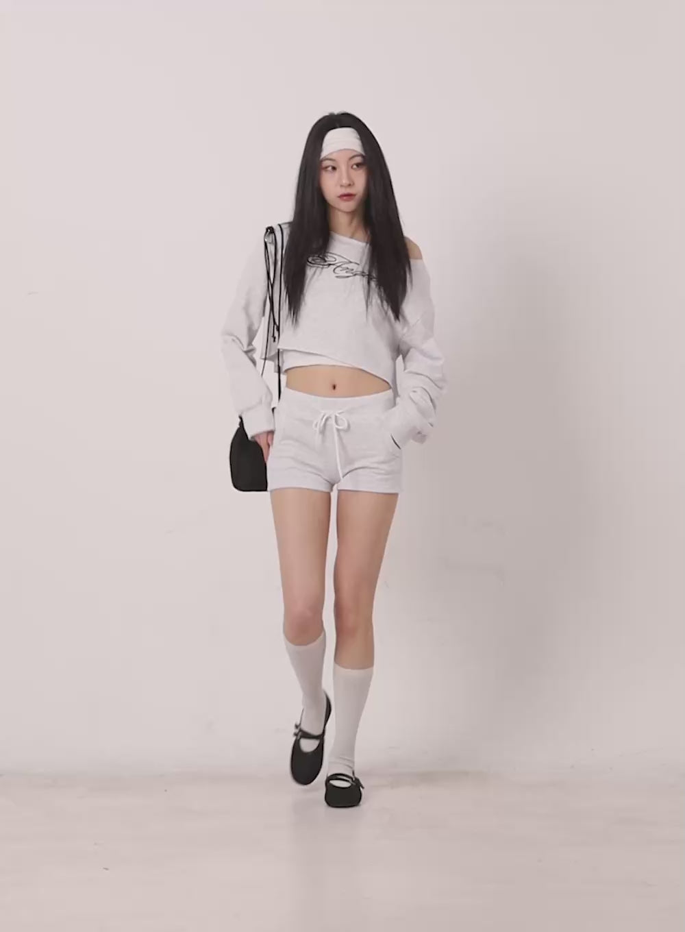 off-shoulder-embroidered-crop-sweatshirt-cm518 / Light gray