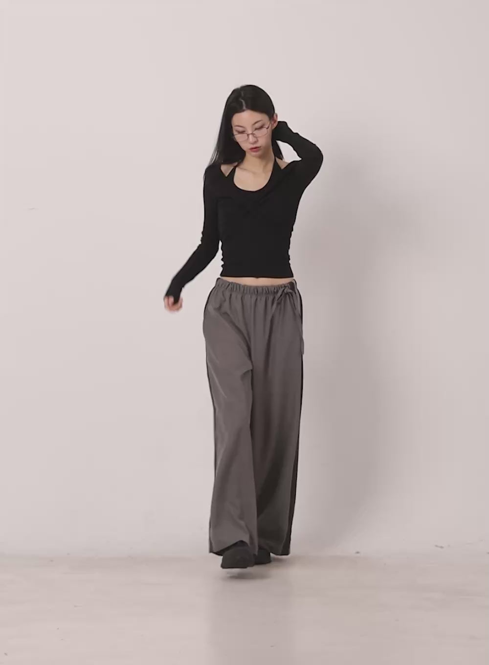 pintuck-pleated-bootcut-skirt-pants-cm503 / Dark gray