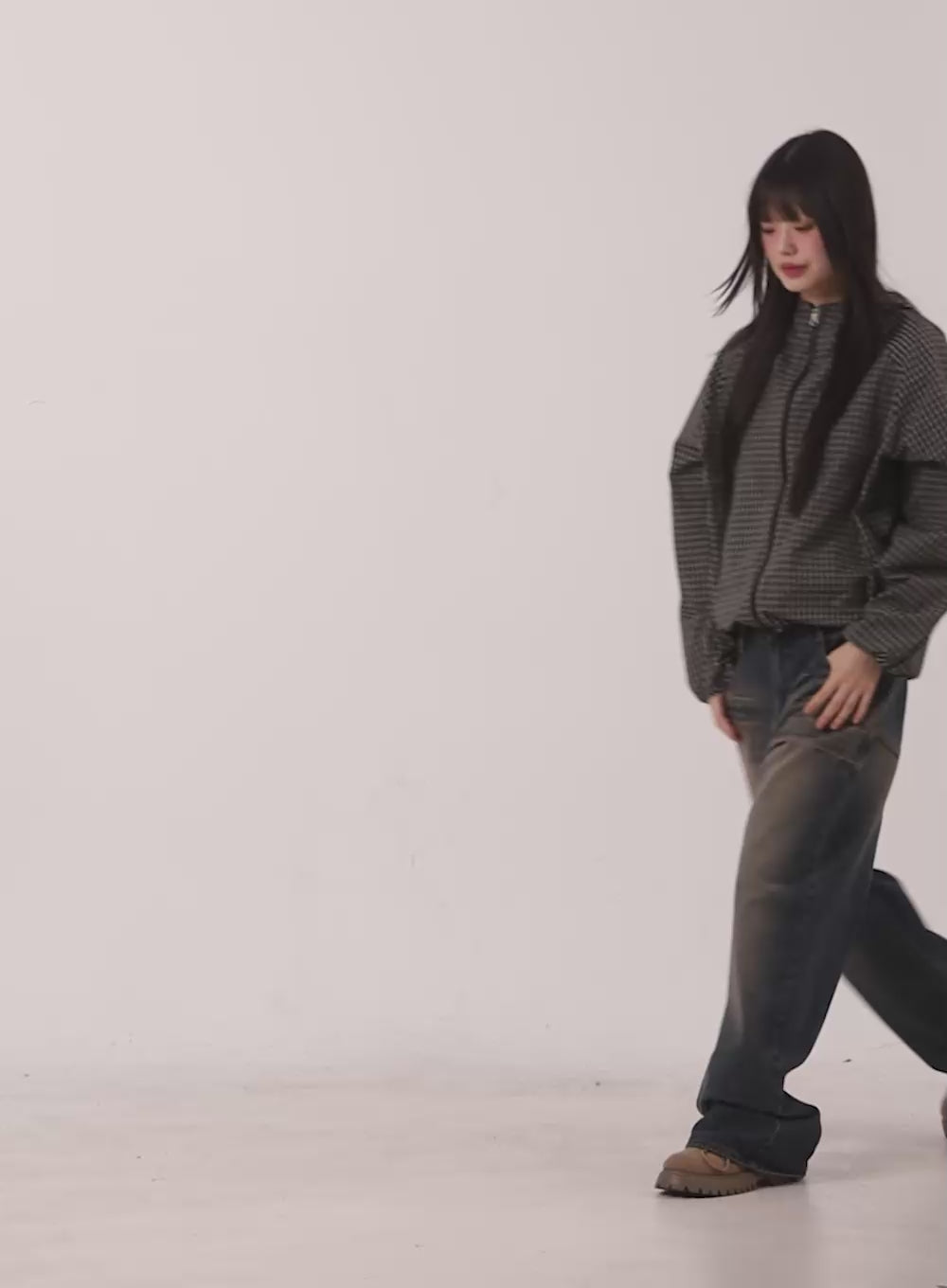 checkered-hooded-windbreaker-jacket-cf519 / Black