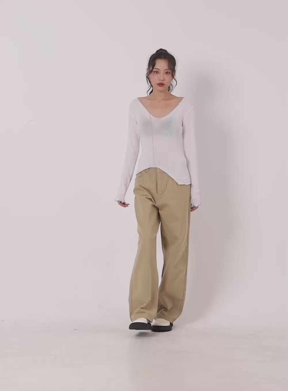 Slim-Fit V-Neck Long Sleeve Top IN427