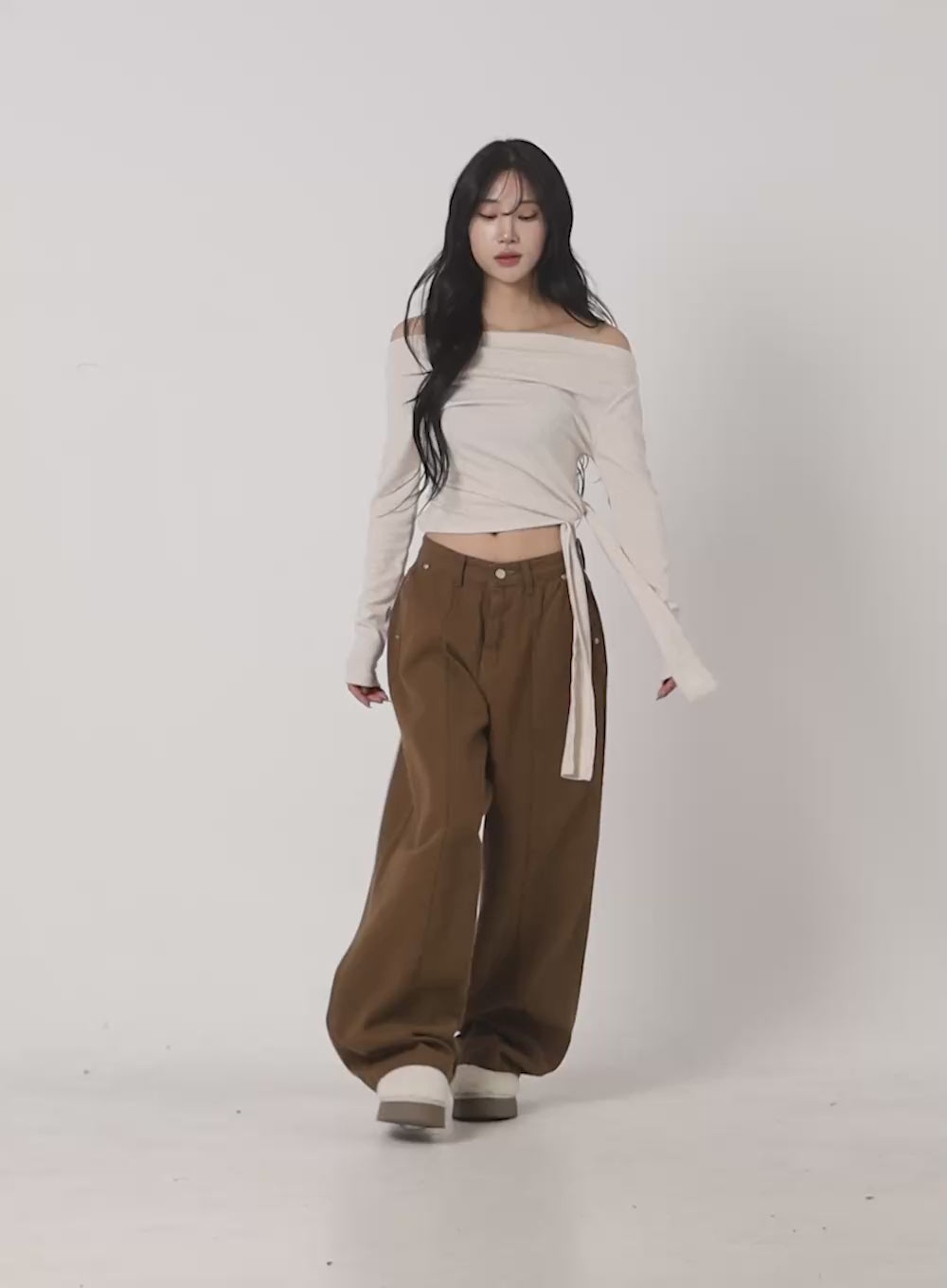 solid-cotton-wide-leg-pants-cn408 / Brown