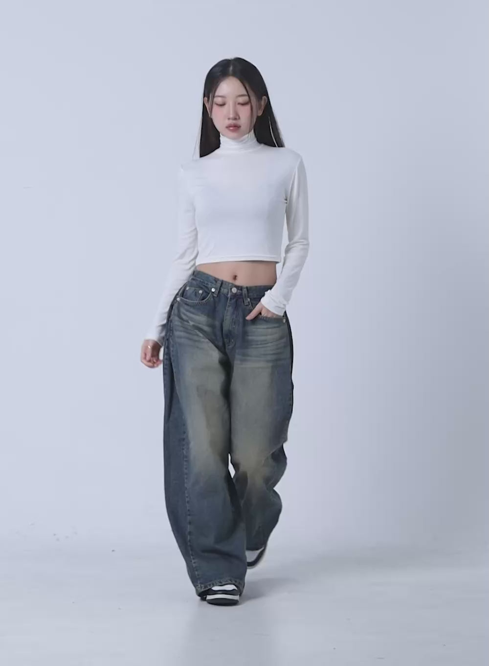 minju-vintage-washed-baggy-jeans-is508 / Dark blue