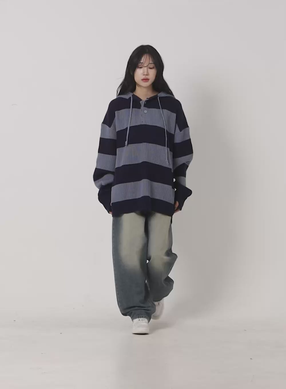 loose-fit-striped-knit-sweater-cn416 / Gray