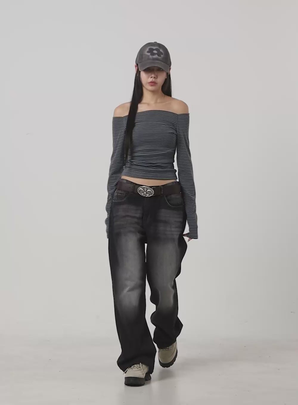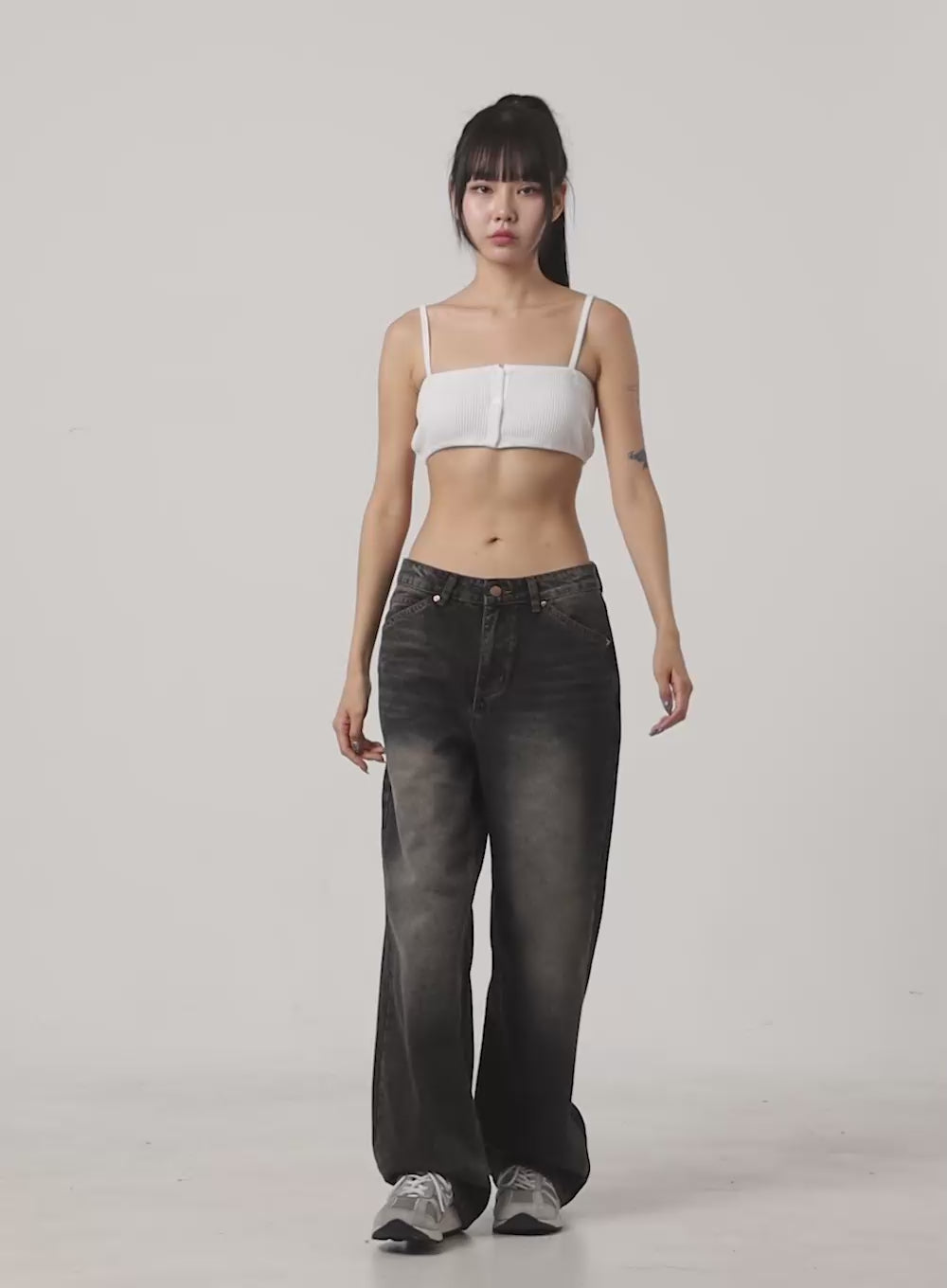 mandy-washed-cotton-wide-leg-jeans-oo401 / Dark gray