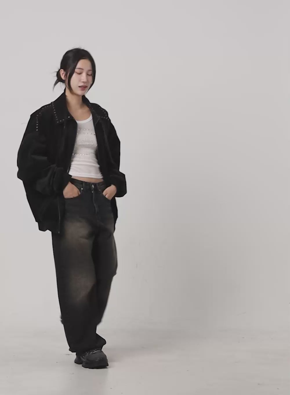 suede-studded-crop-jacket-cs504 / Black