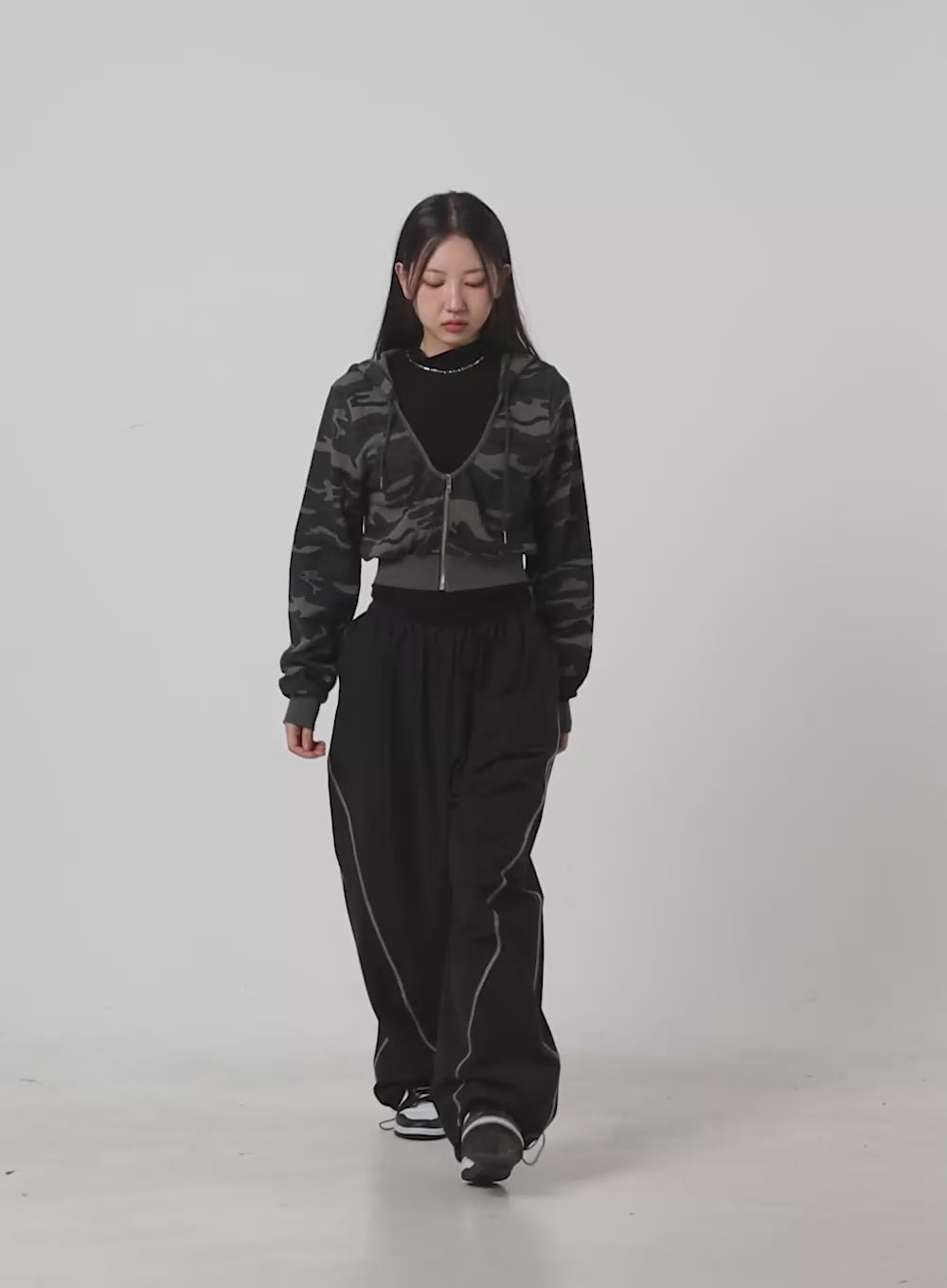camo-cropped-hoodie-zip-up-co402 / Black