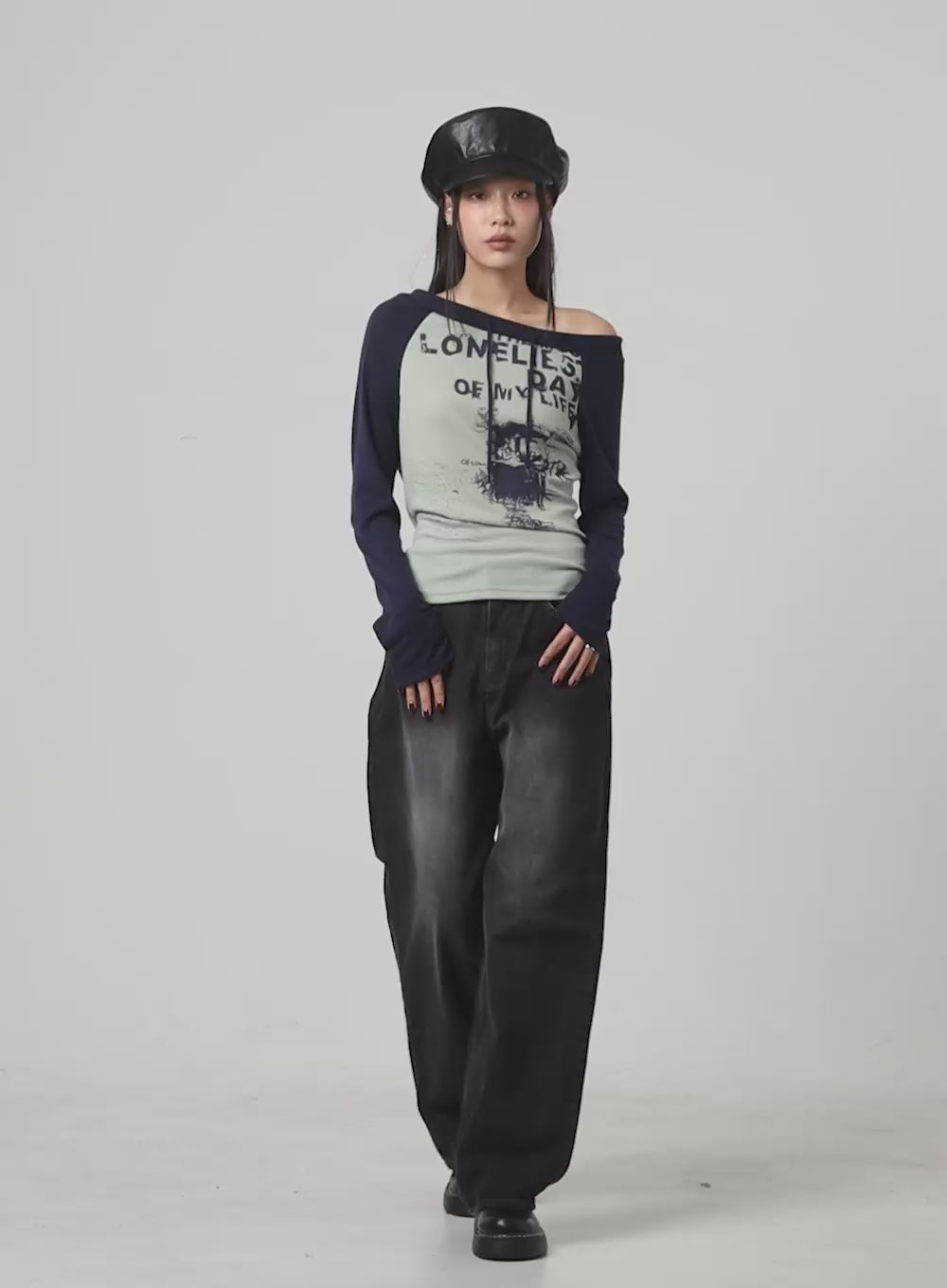 one-shoulder-raglan-long-sleeve-is427 / Mint