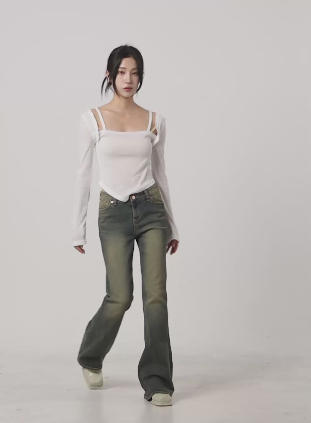 button-long-sleeve-top-cs502 / White