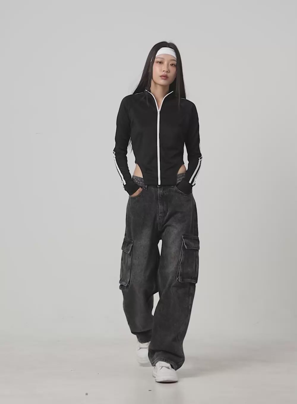 neve-washed-cargo-denim-jeans-is427 / Black
