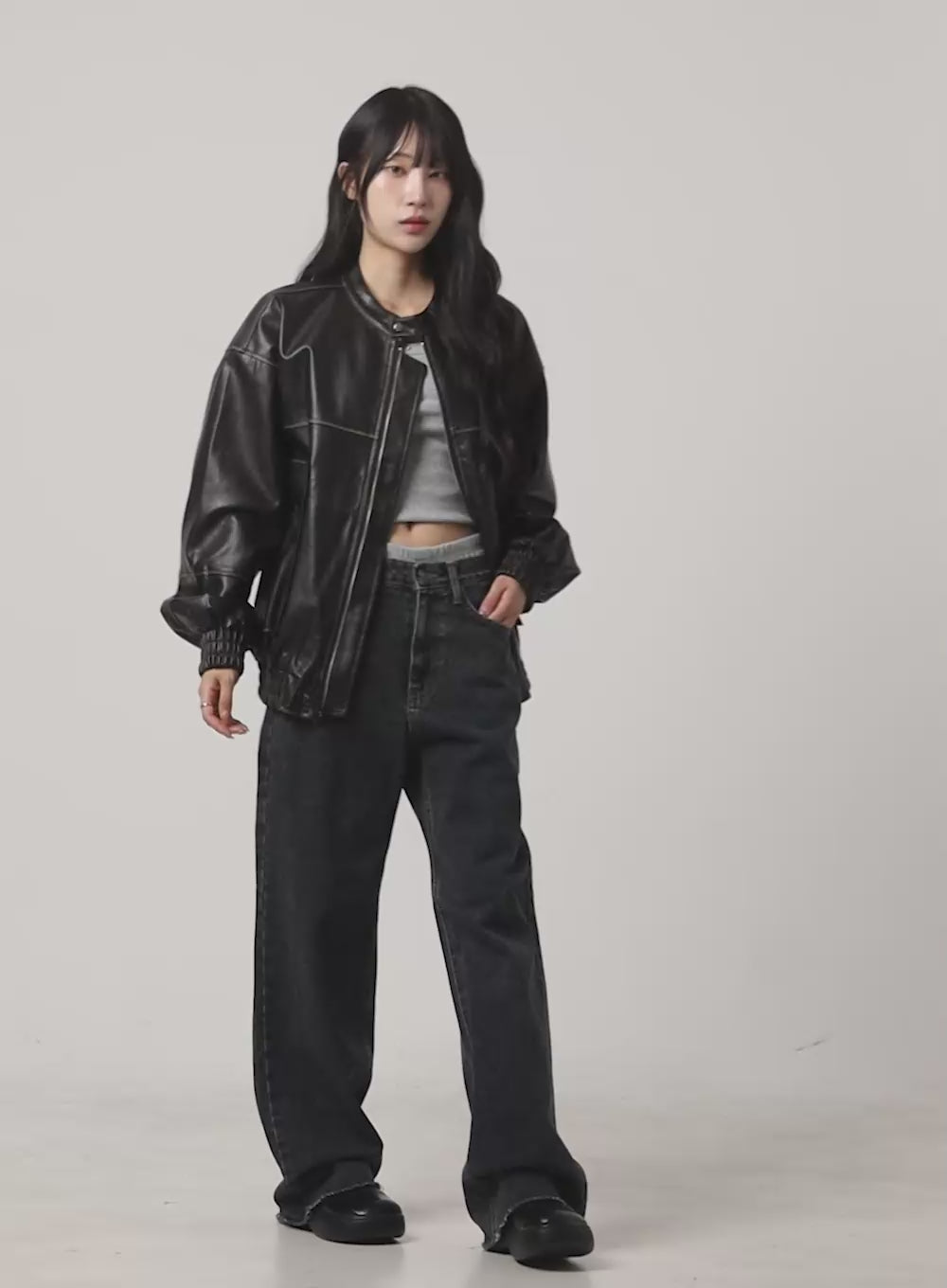 Oversized Faux Leather Bomber Jacket (UNISEX) CG420