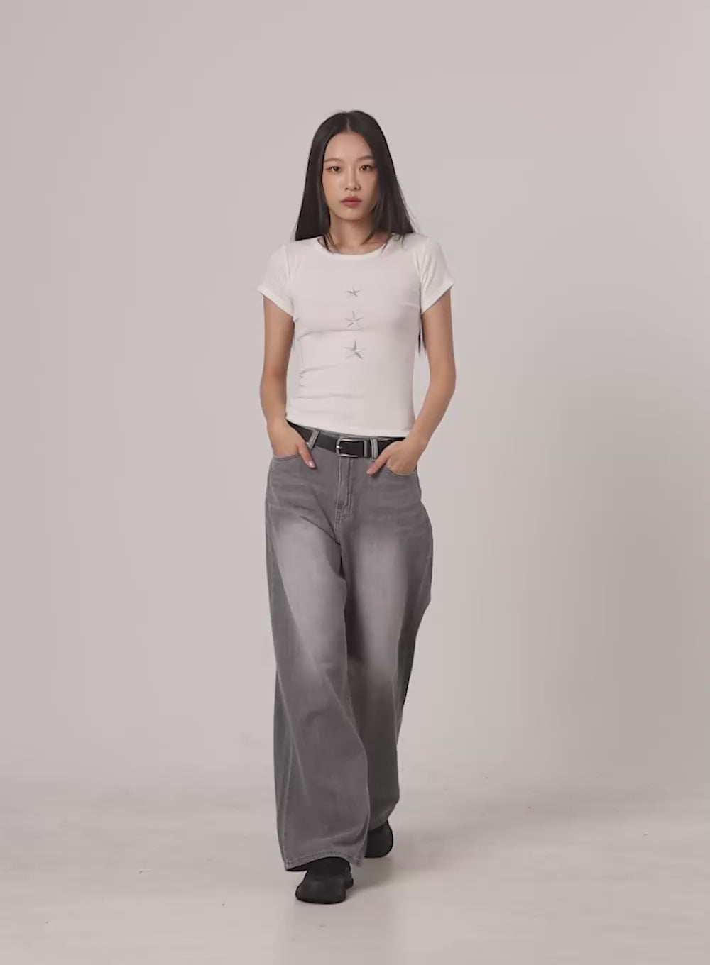 elen-pintuck-baggy-jeans-cg519 / Black