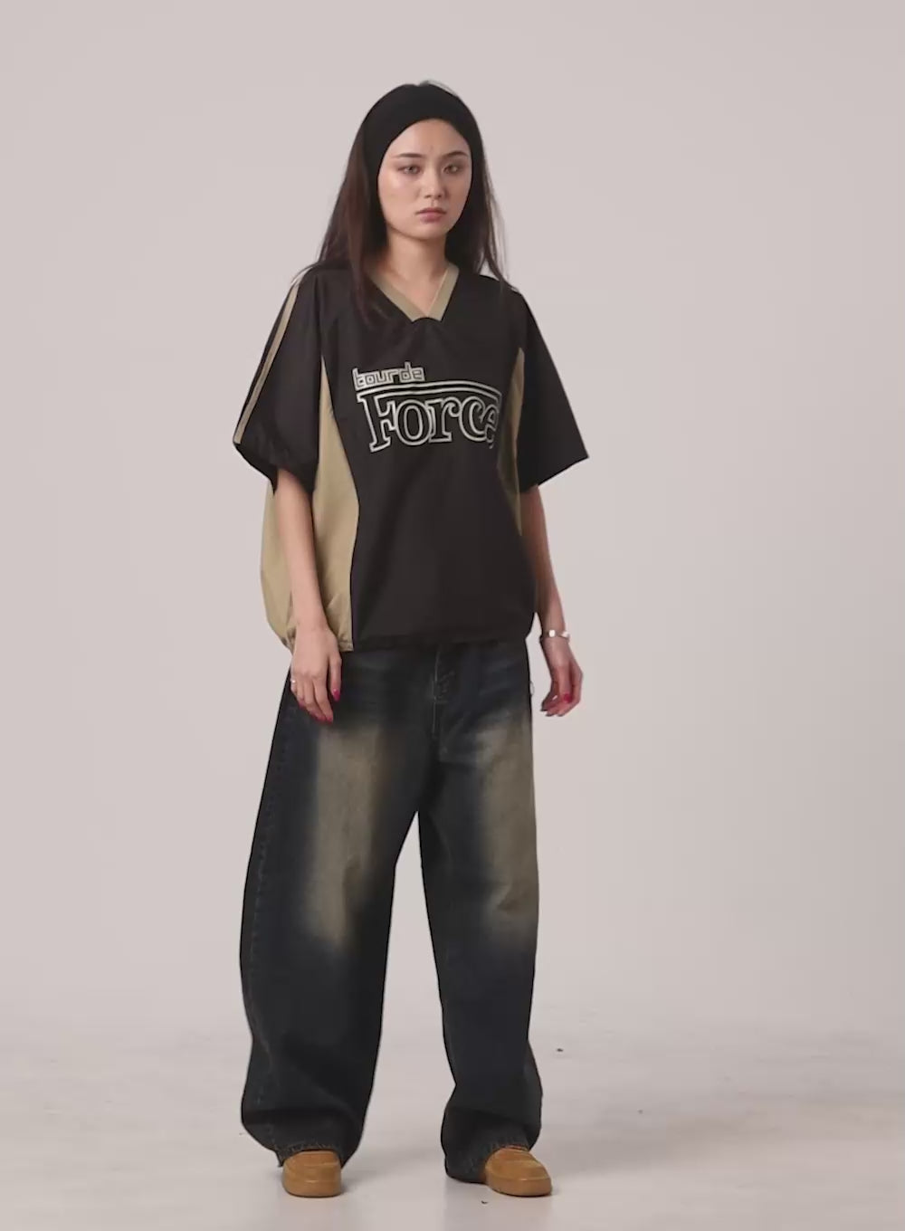 stitch-detail-baggy-jeans-cu410 / Dark blue