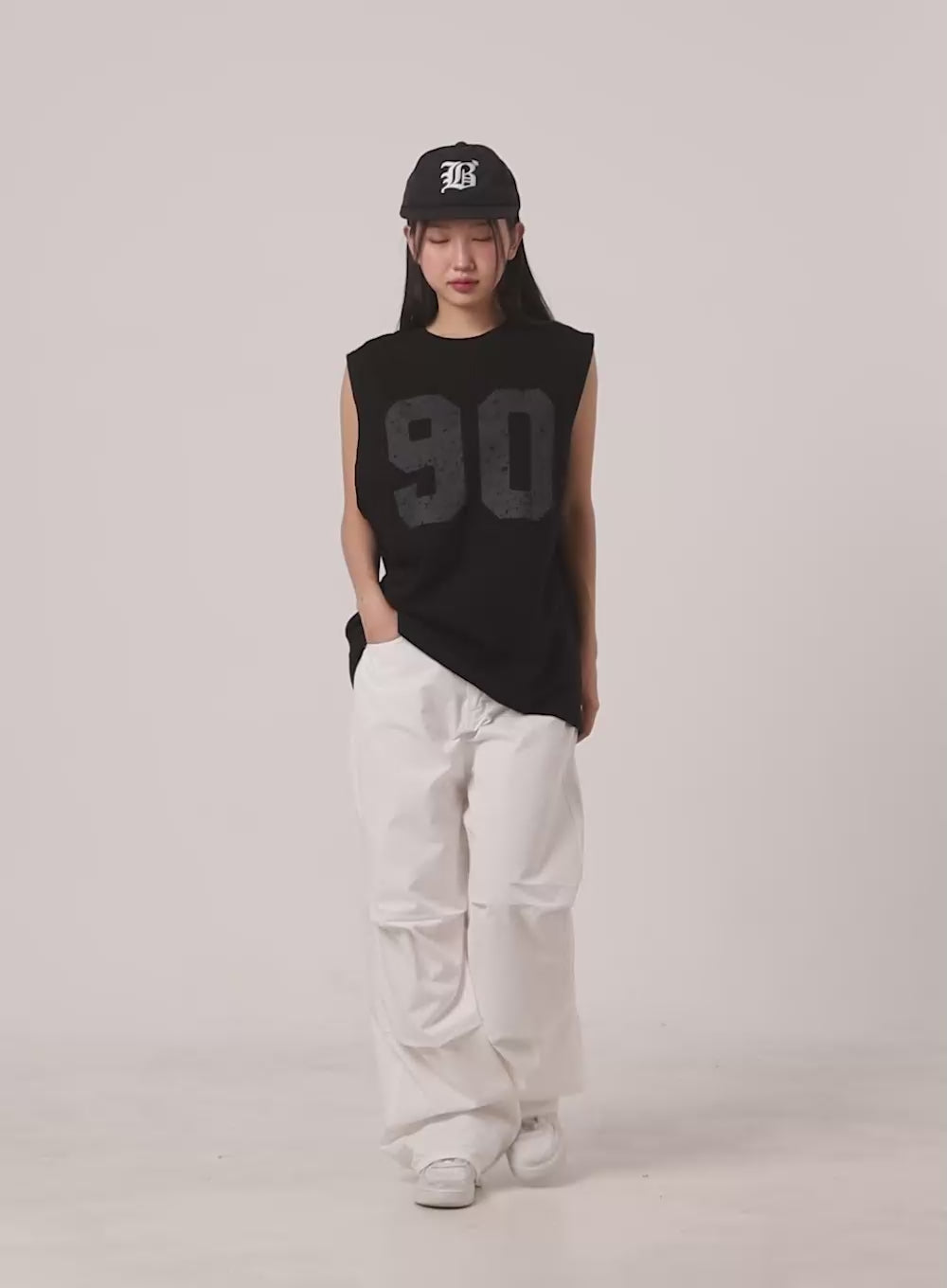 graphic-mid-buttoned-cotton-tank-top-cu410 / Black