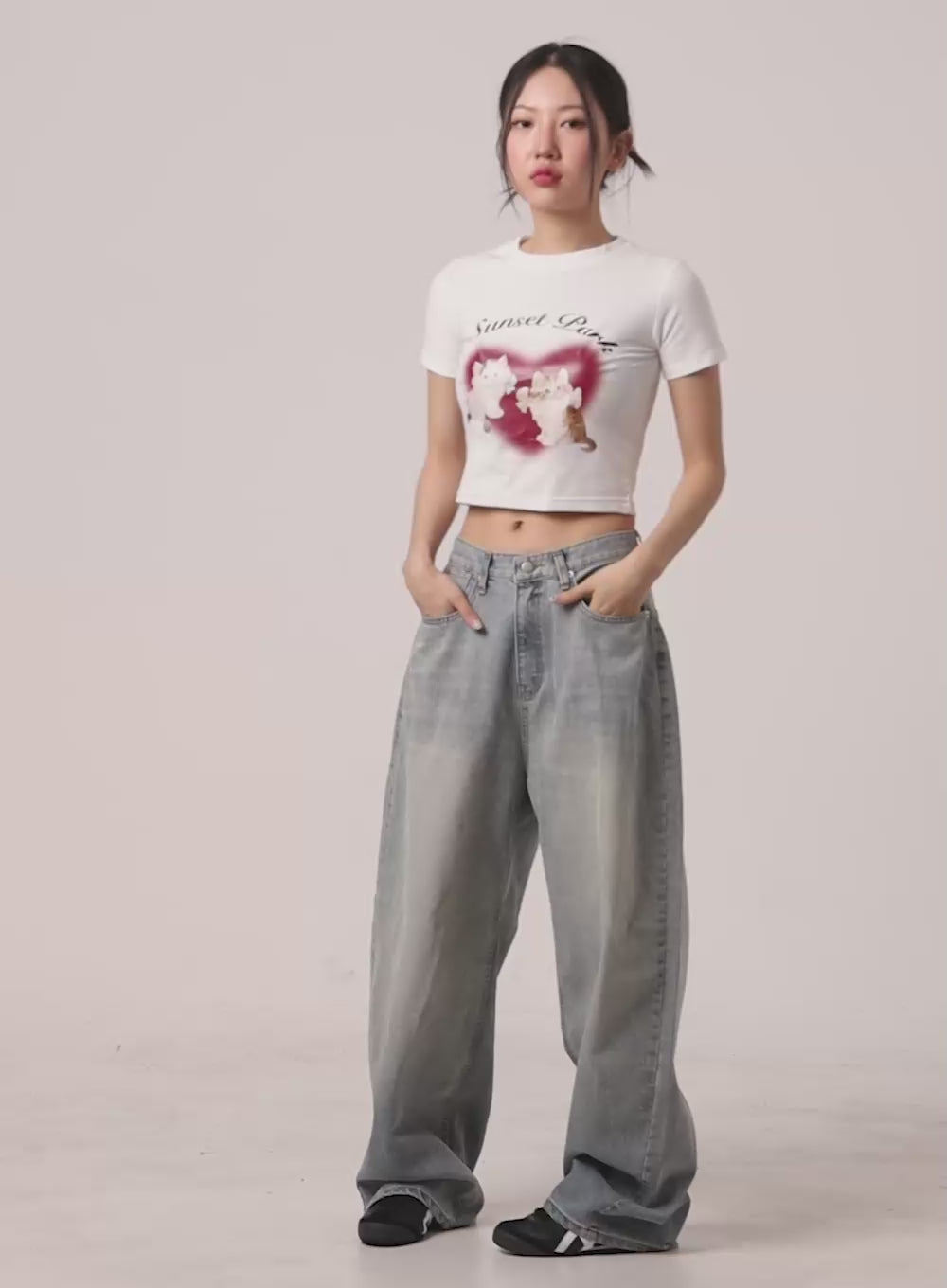 Soyoung Washed Adjustable Wide-Leg Jeans IG508