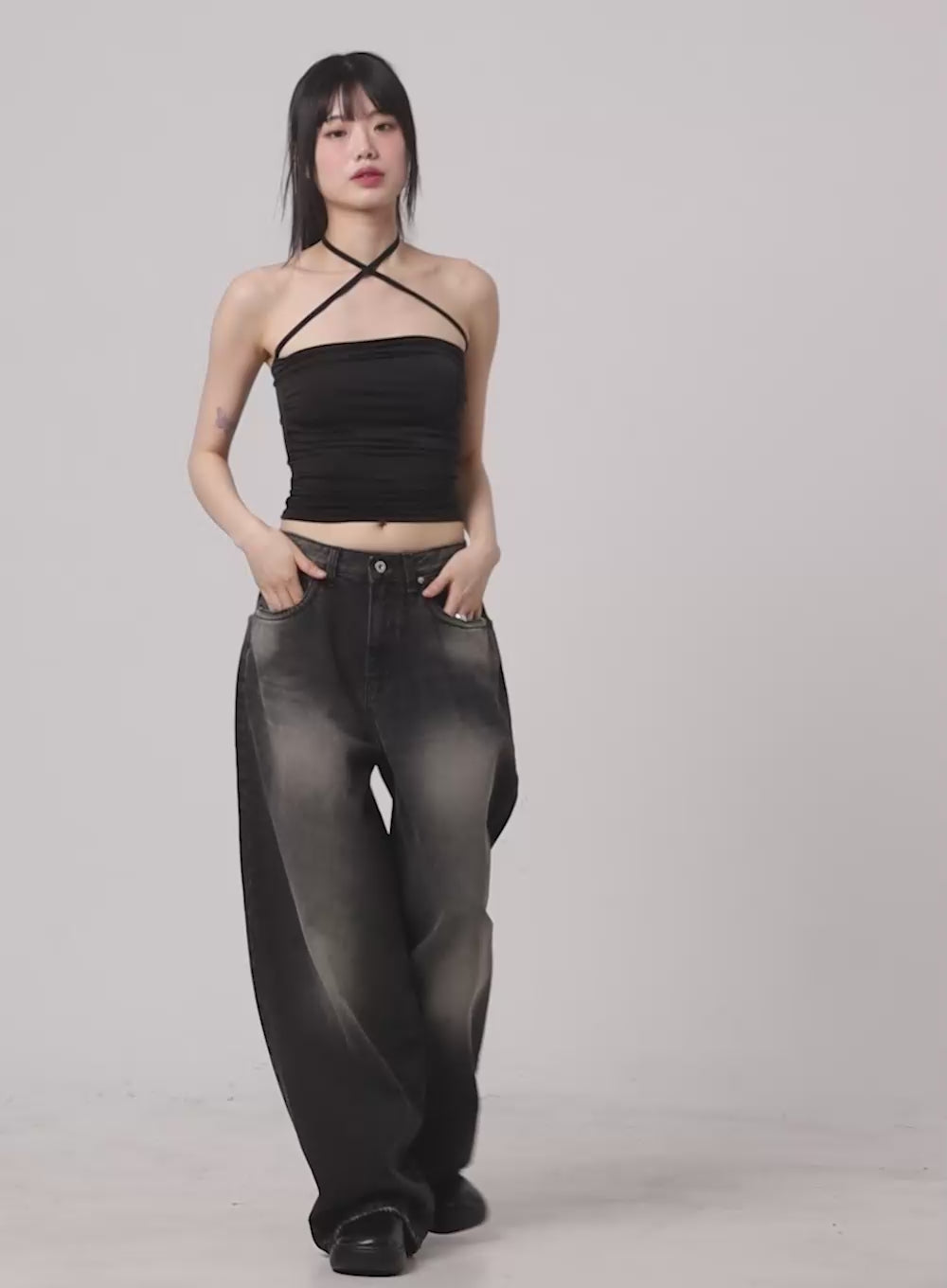 gayeon-washed-wide-leg-jeans-cg507 / Black