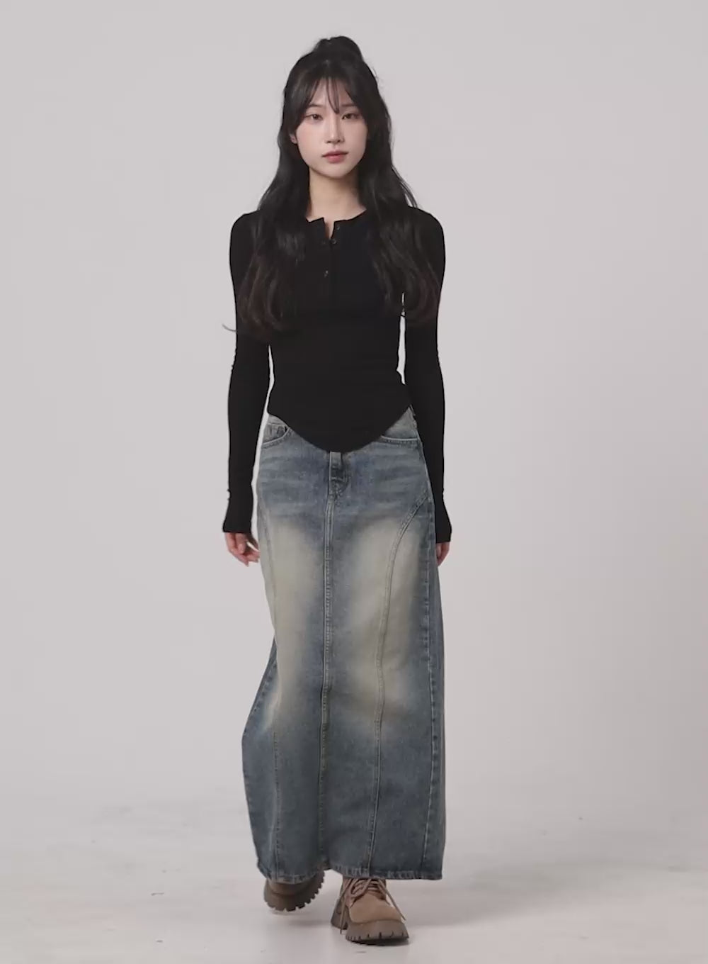 vintage-washed-denim-maxi-skirt-ca403 / Black