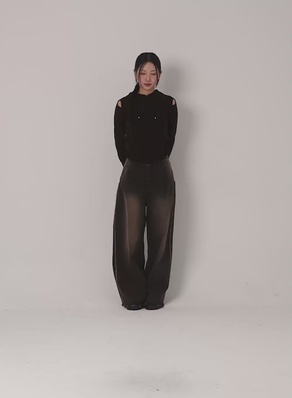 wendy-washed-wide-leg-jeans-iu524 / Black