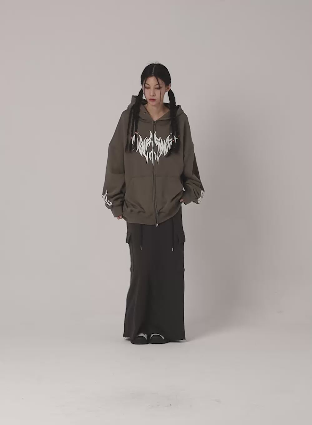 grunge-graphic-zip-up-hoodie-is322 / Dark gray