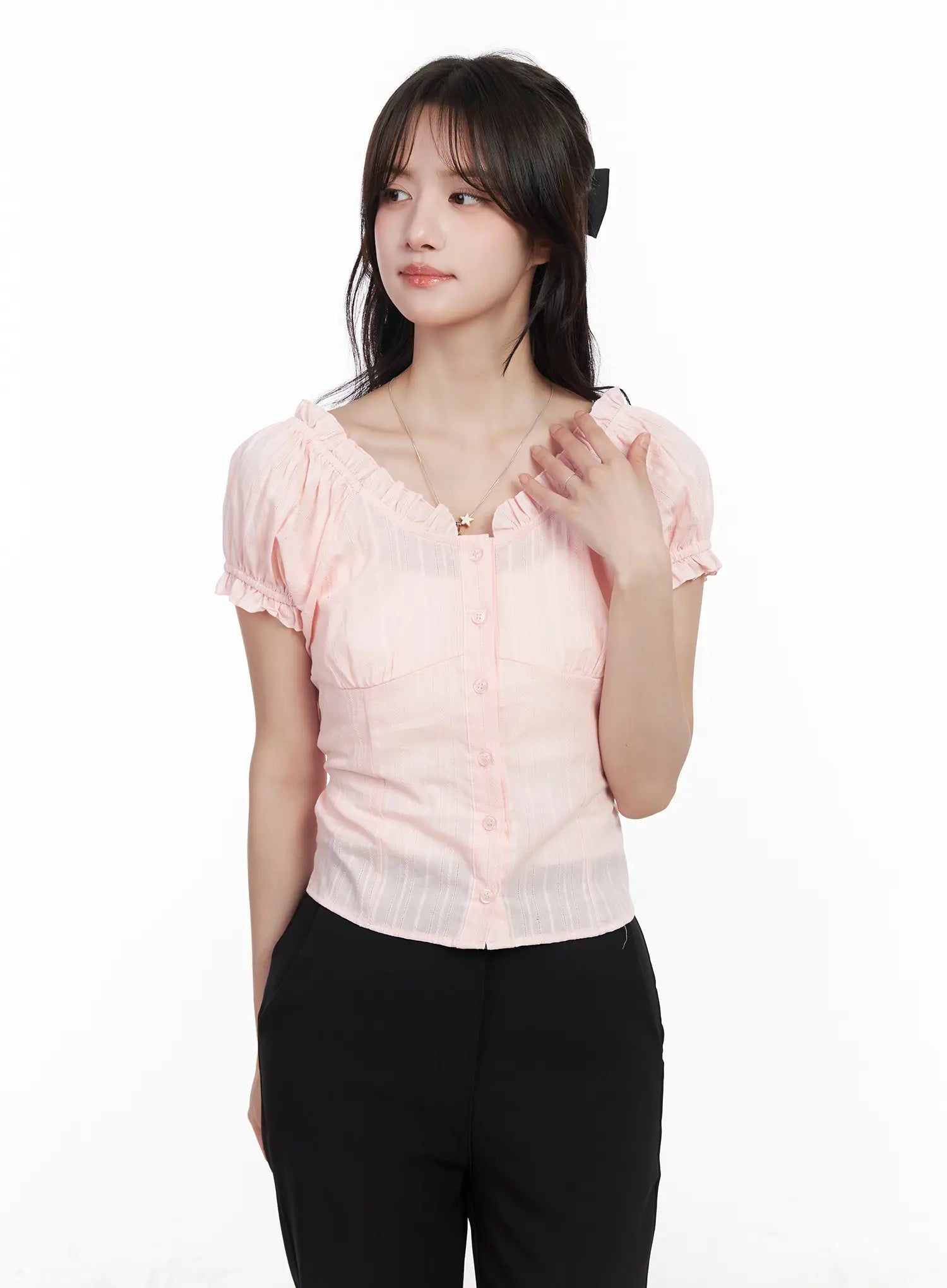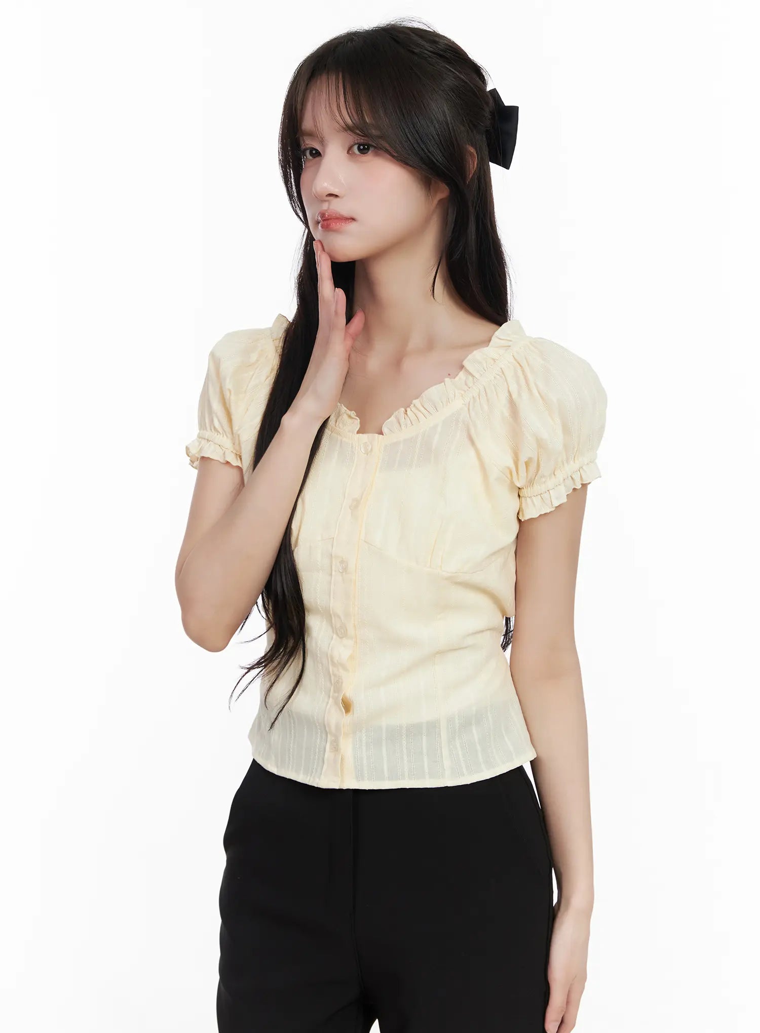 Puff Sleeve Buttoned Blouse with Back Tie CM531