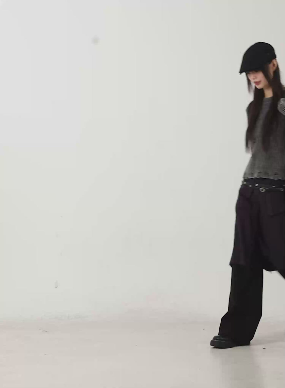 The puffer jacket, styled with ski goggles and chunky sneakers, effortlessly balances functionality and edge. Its clean lines and monochromatic palette create a Y3K look that’s perfect for winter activities or insta-worthy photos. This ensemble encapsulates the collection’s focus on merging comfort with cutting-edge picks.