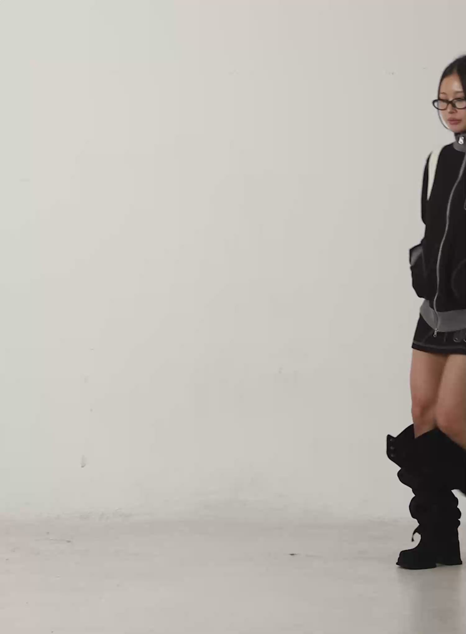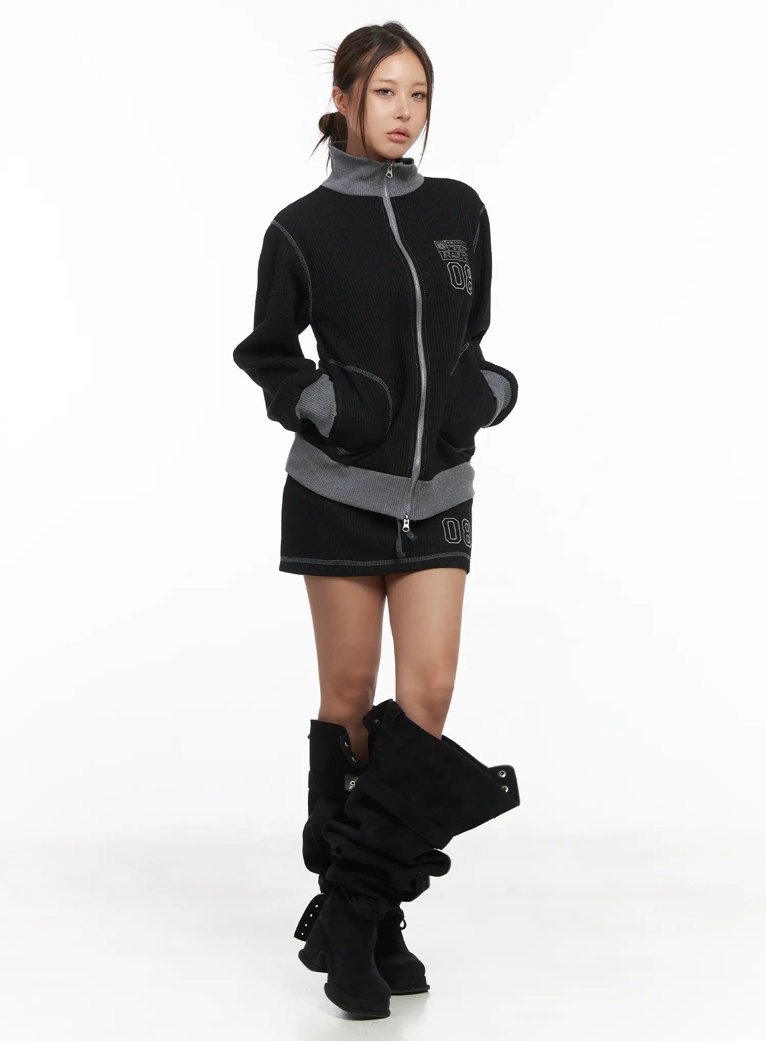 Loose Fit Two-Tone Waffle Zip-Up CJ512