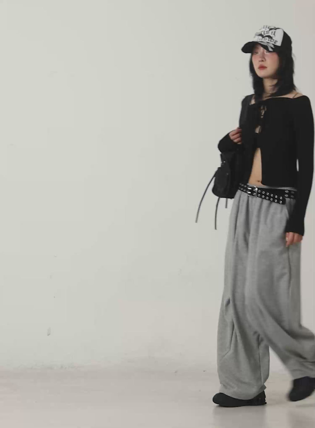 wide-leg-drawstring-weatpants-cj527 / Gray