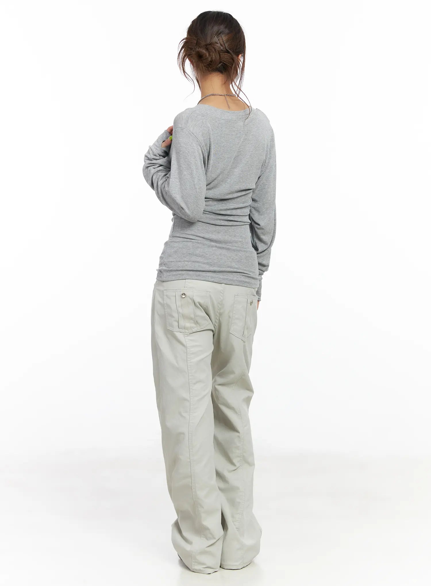 Model is wearing size M and the color Light beige.