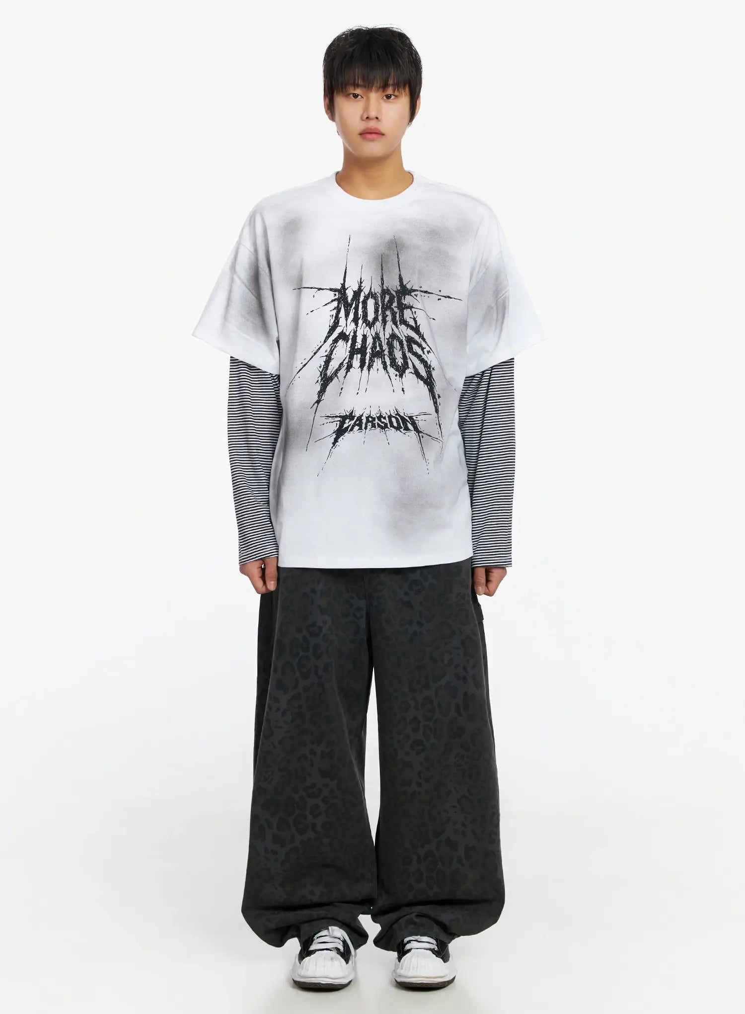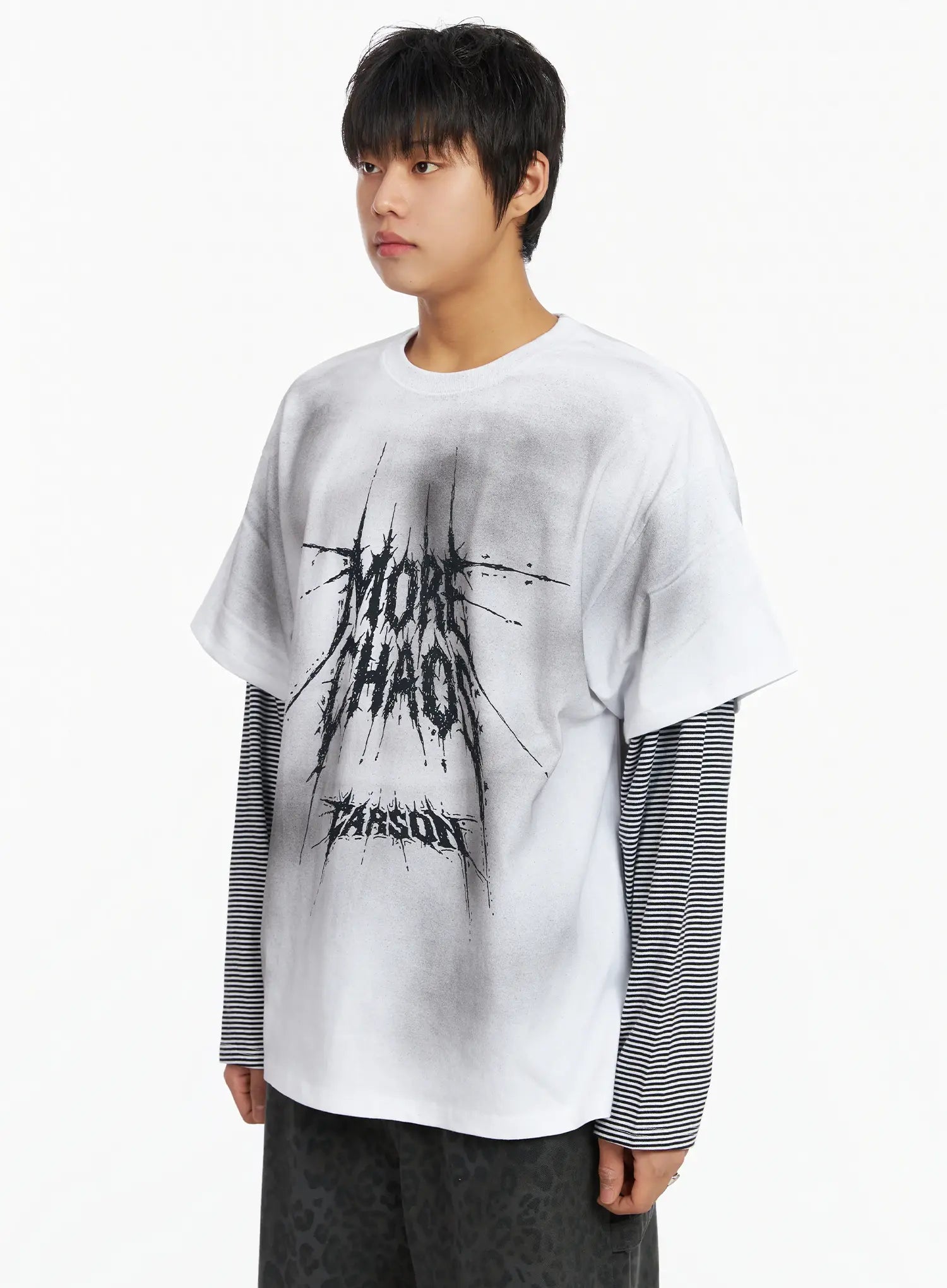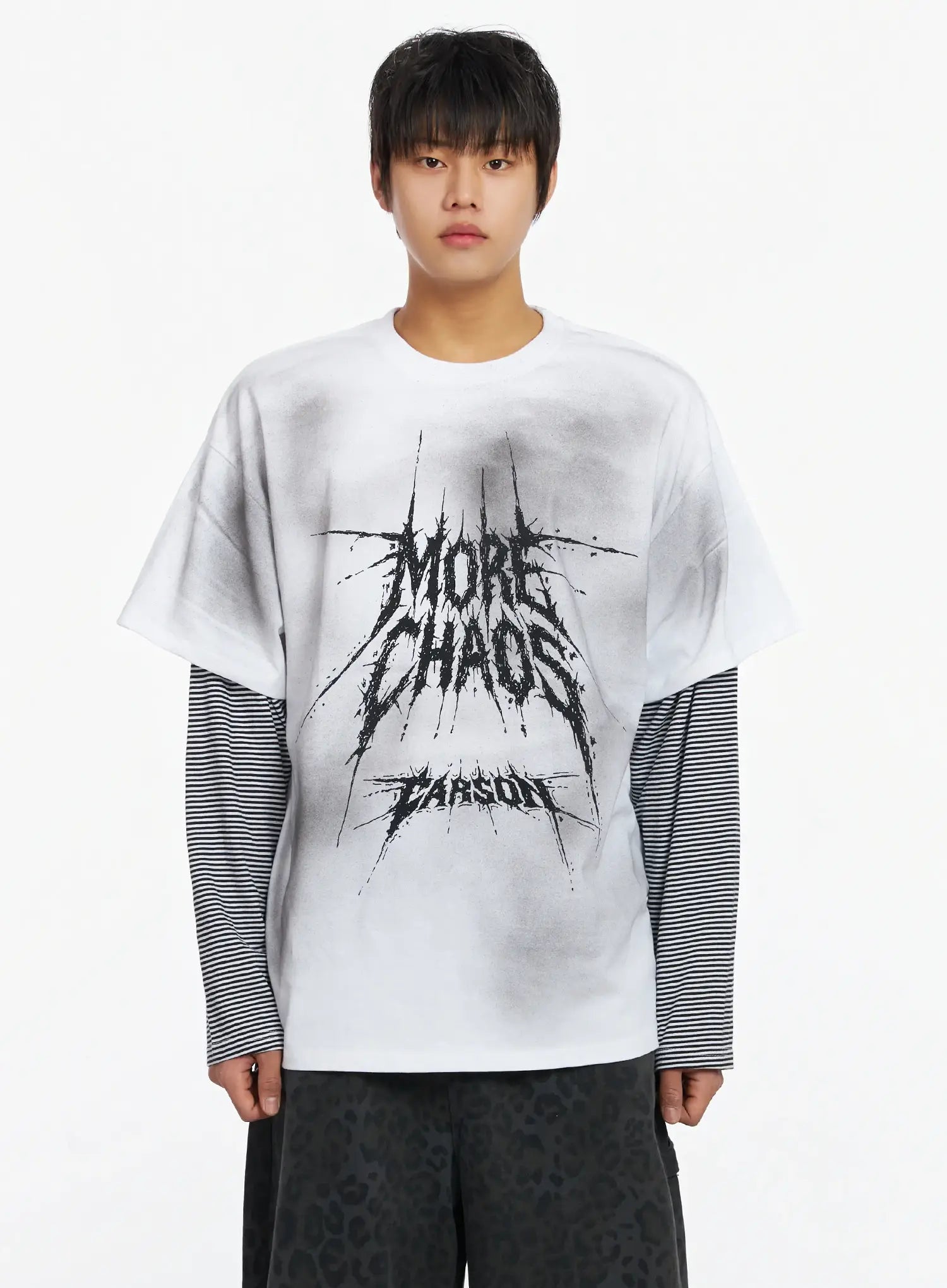 Men's White Vintage Graphic Layered Long Sleeve Tee IJ527