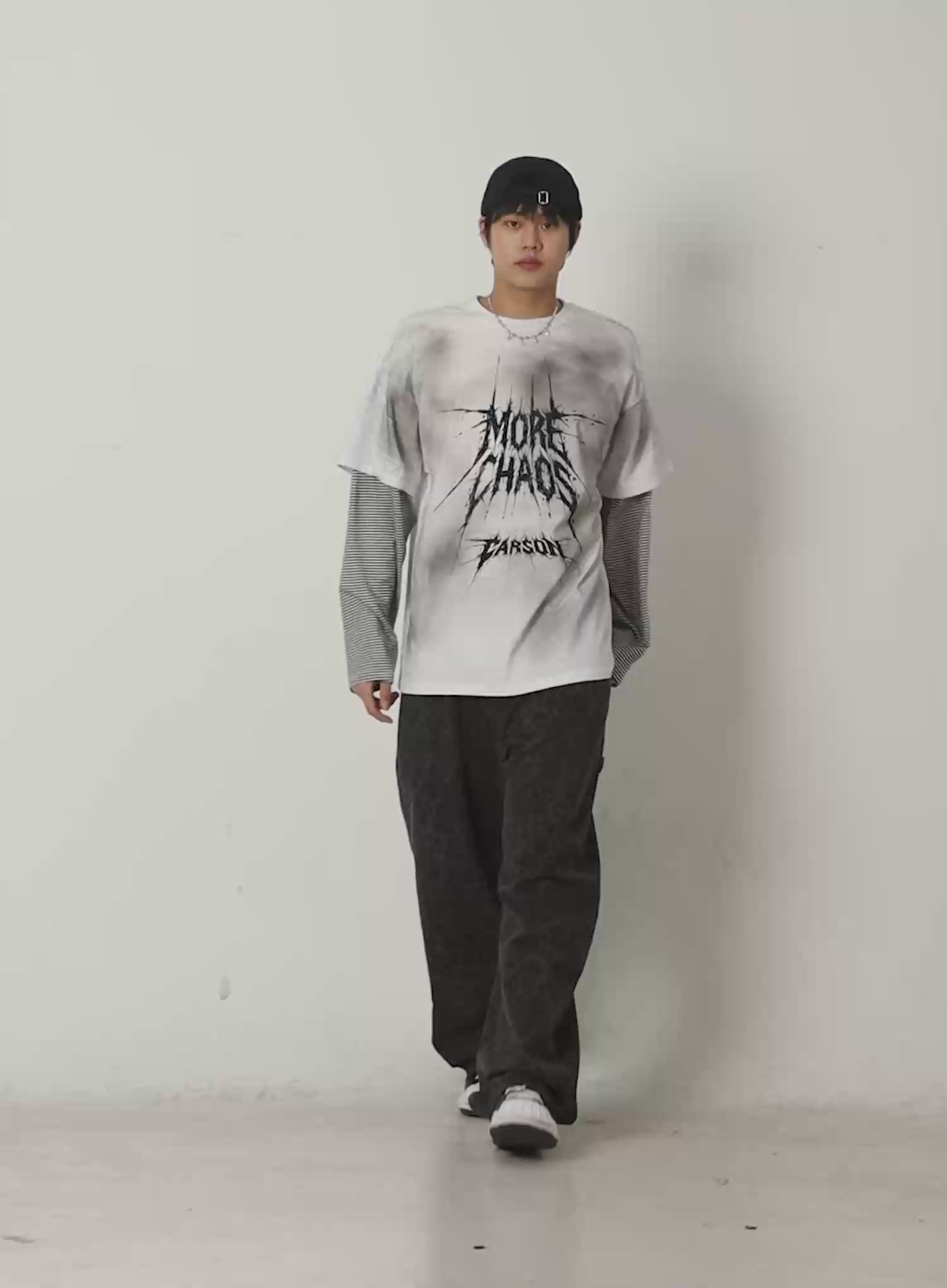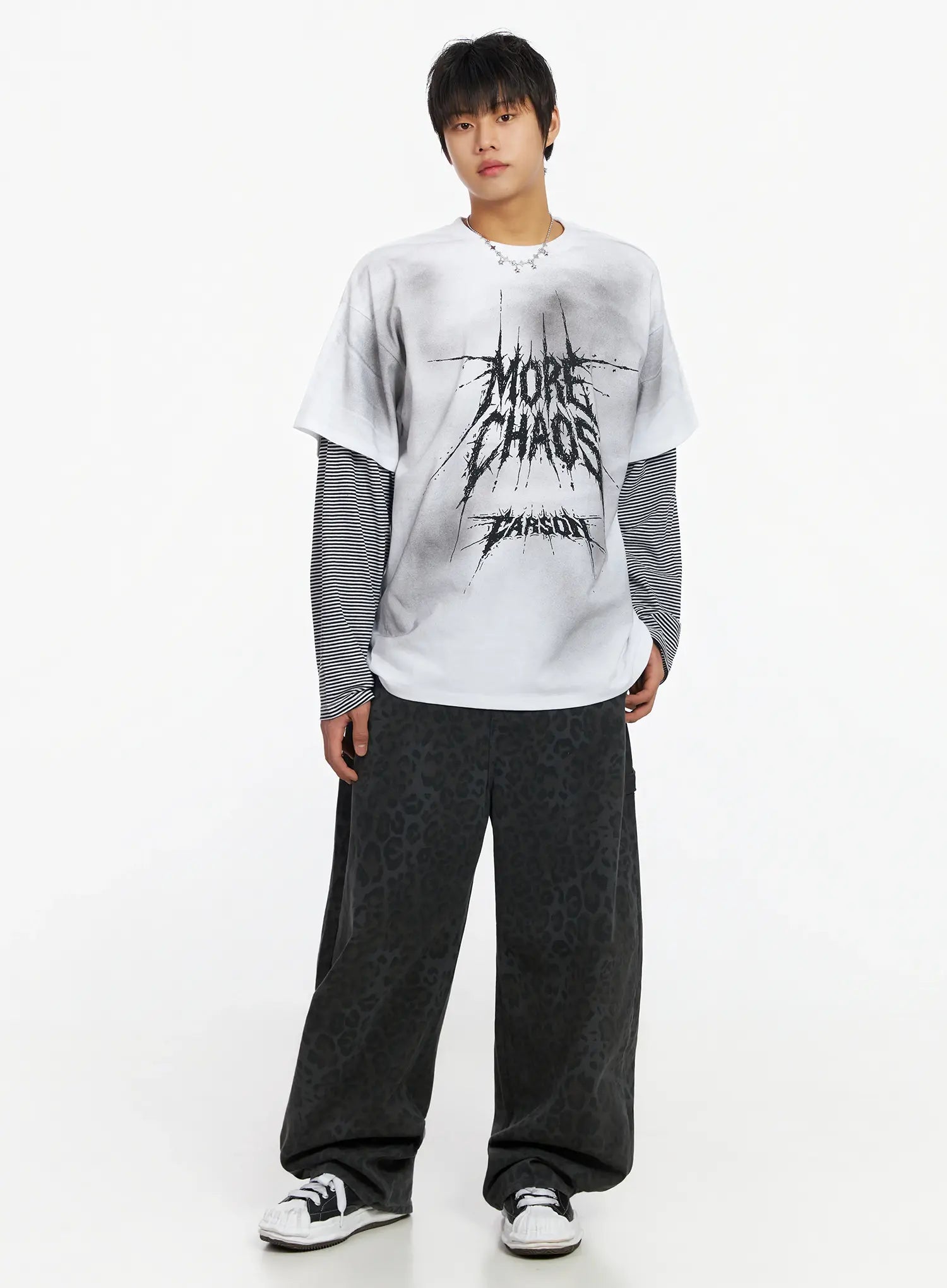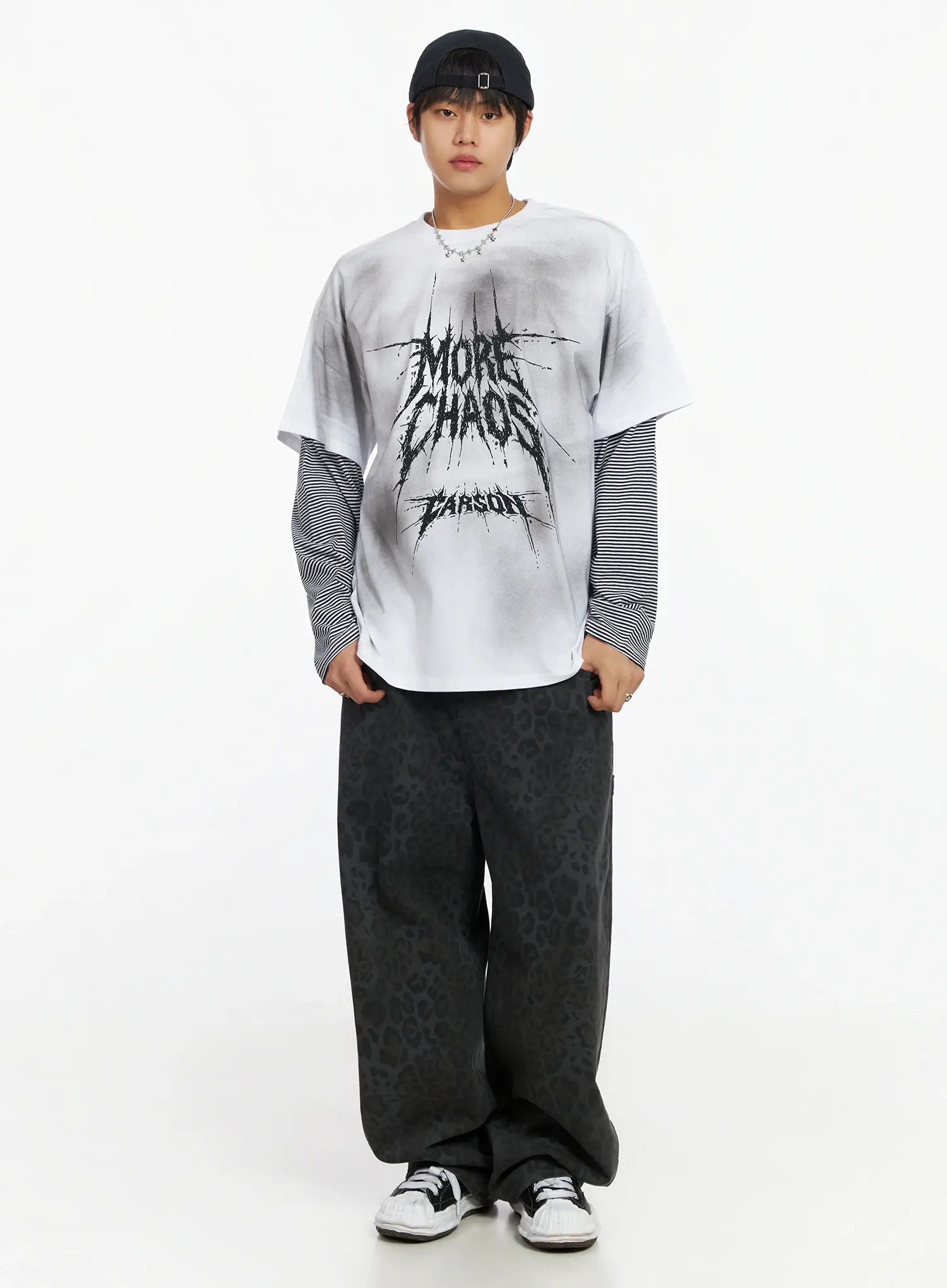 Men's White Vintage Graphic Layered Long Sleeve Tee IJ527