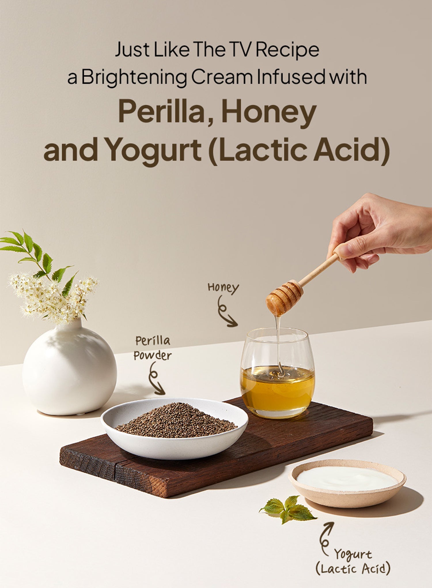 - Perilla seeds, honey and yokurts catch spots and improve skin tone