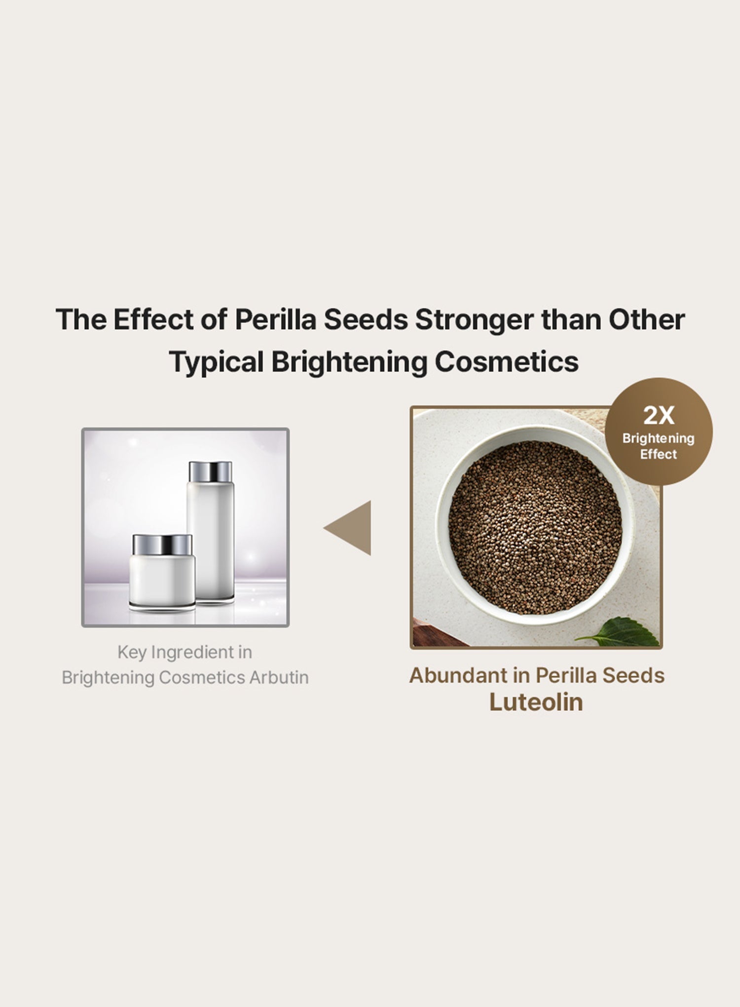 - Contains Perilla Seed Extract for powerful antioxidant and brightening effects