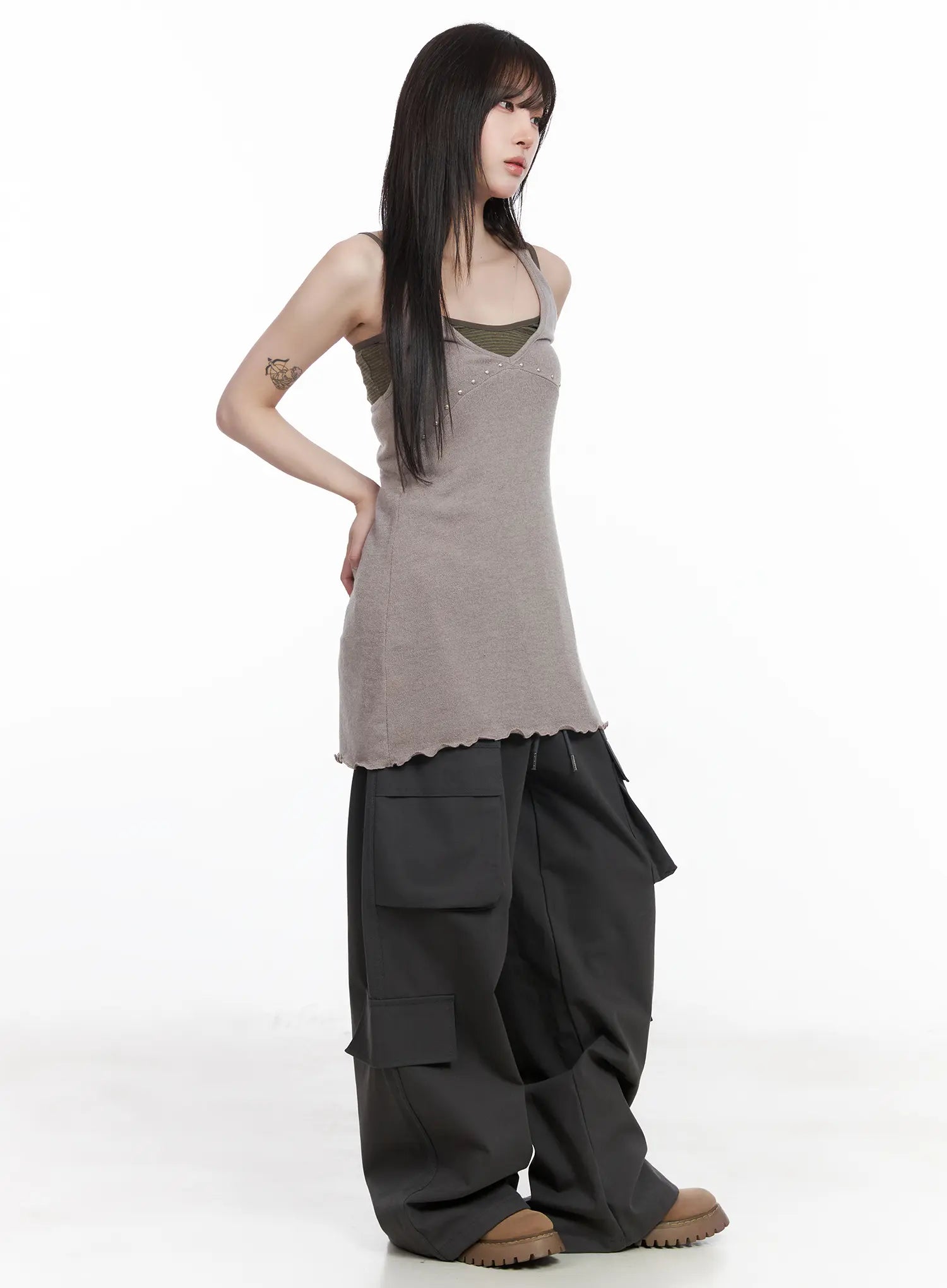 Wide Leg Patch Pocket Cargo Pants CF523
